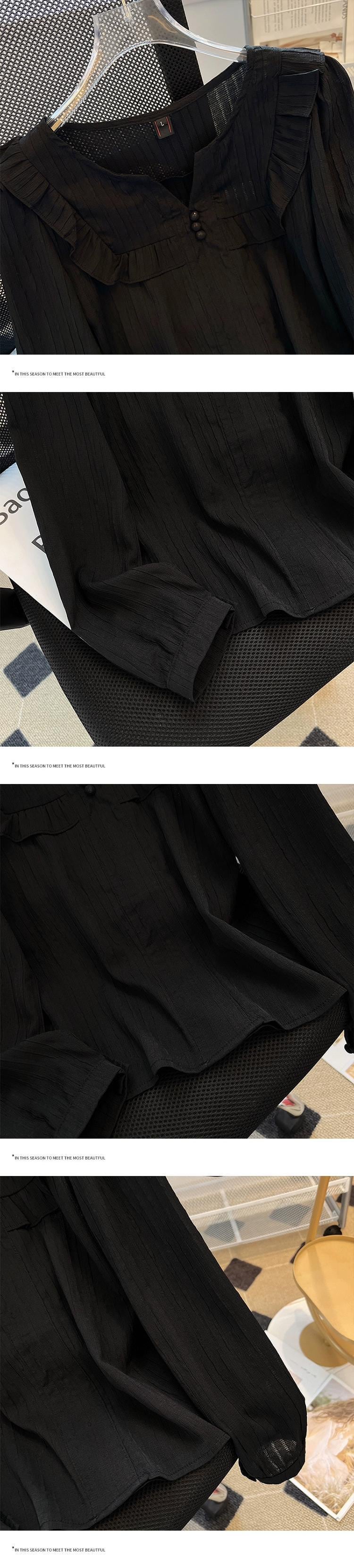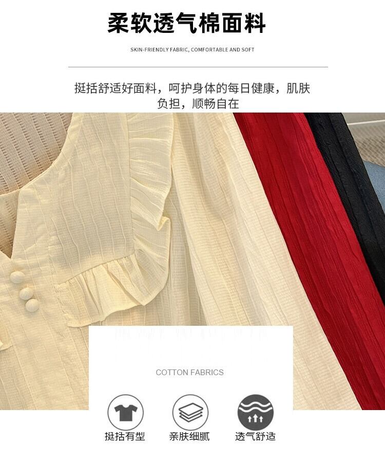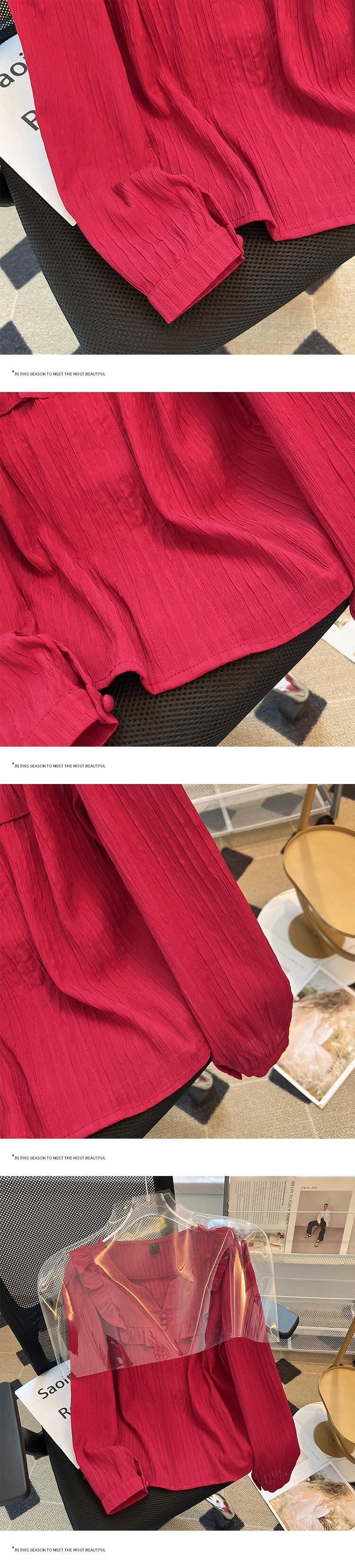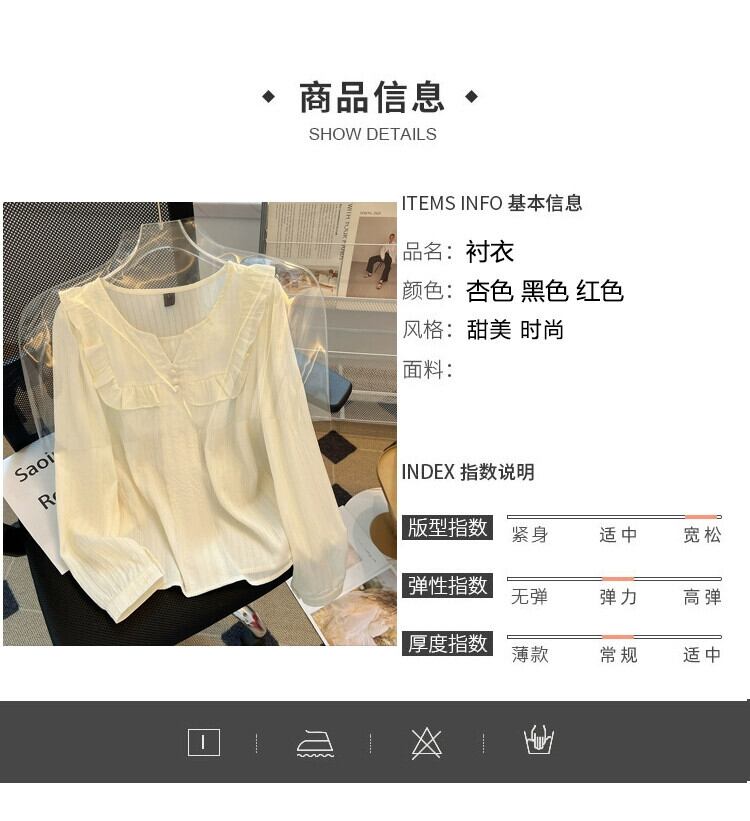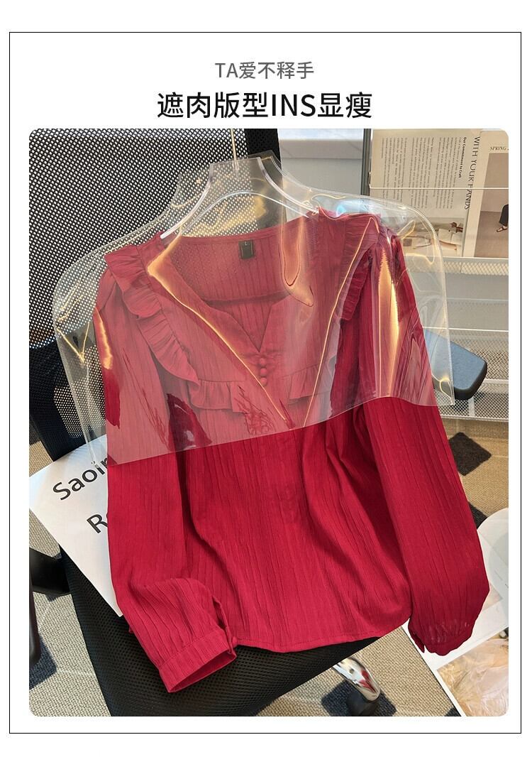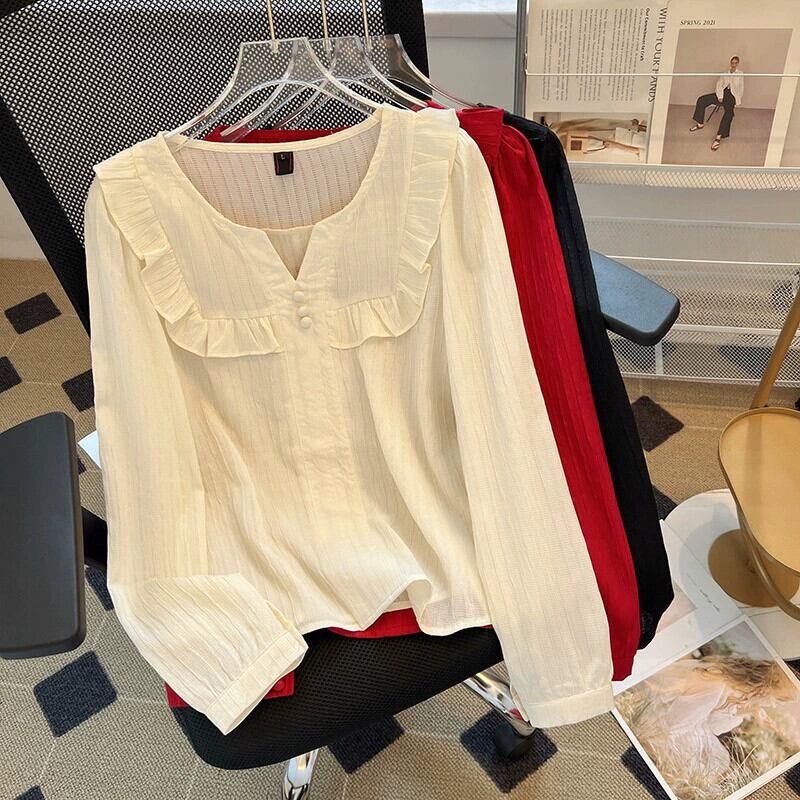 プラスサイズの女性の 2023 トレンディな秋スタイルファットシスター木の耳トップスに注意してください高度なドールカラー長袖シャツ ロング 大きめサイズ オータム 秋物 8884144398525359