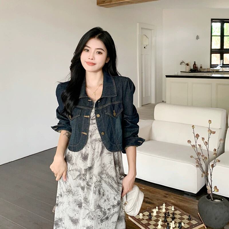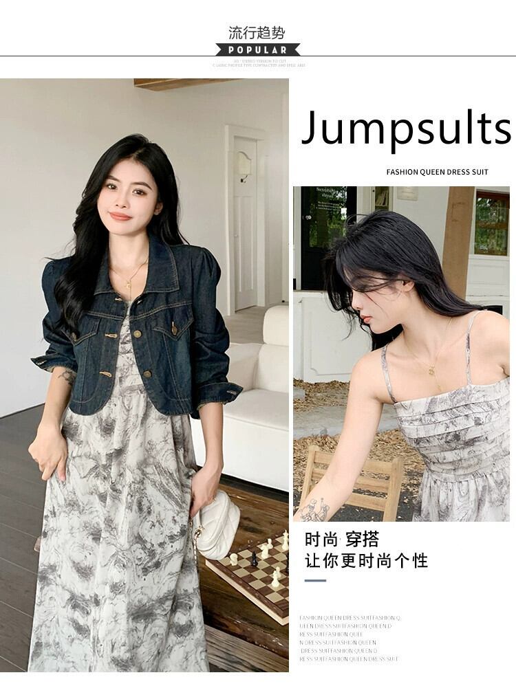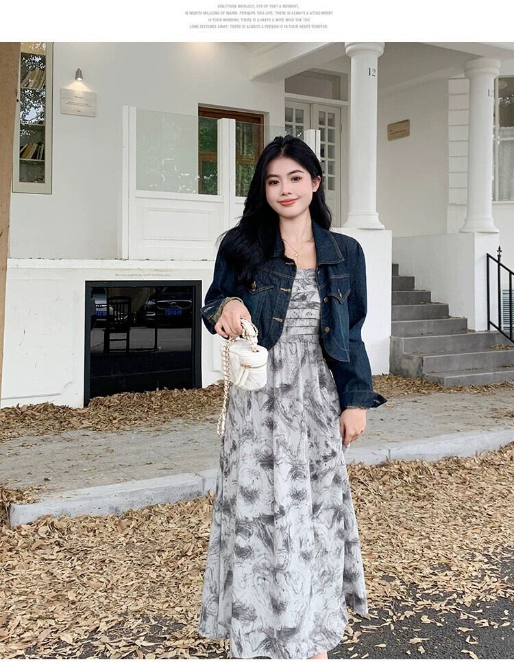 プラスサイズの婦人服 2023 流行の秋の新しいファットシスターレトロスーツハイエンドデニムジャケットドレス 2 点セット 大きめサイズ オータム 秋物 8884195855448866