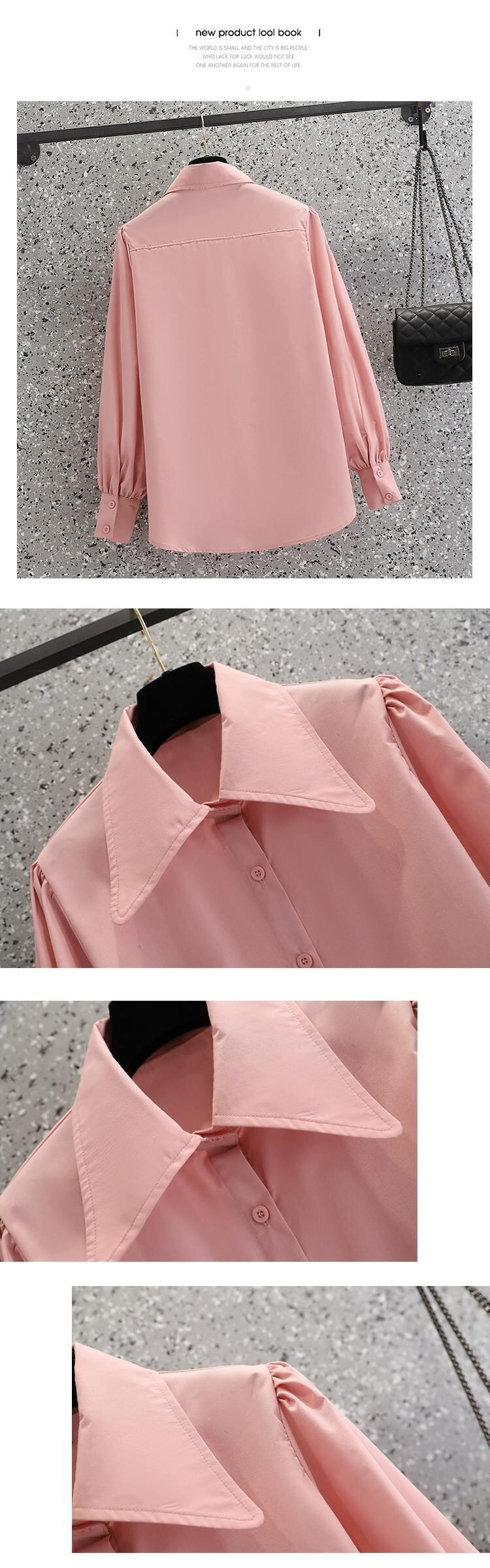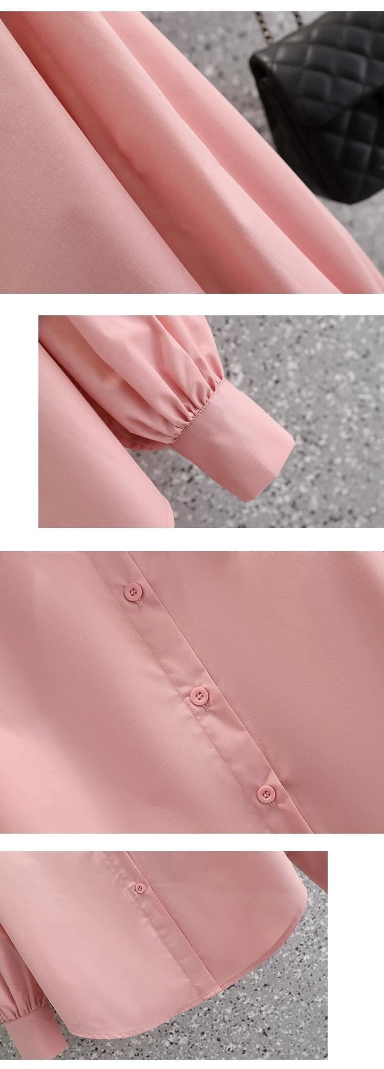 プラスサイズの婦人服 2023 ファットシスター秋の新コアスパン糸ピンクニットベストとポロカラーシャツ 2 点セット 大きめサイズ オータム 秋物 8884163983668373