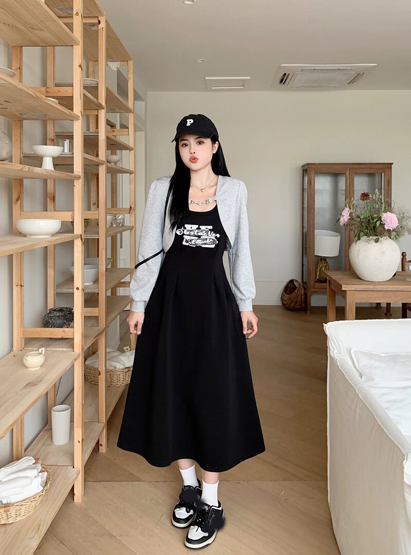 プラスサイズの婦人服 2023 ファットシスター秋服新デザイン痩身スーツサスペンダードレスブラウス 2 点セット 大きめサイズ オータム 秋物 8884123444158672