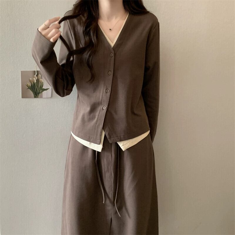 プラスサイズの婦人服 2023 ファットシスター秋服新しいファッション偽ツーピーストップスとスカートスリムでルーズツーピースセット 大きめサイズ オータム 秋物 8884160264746498