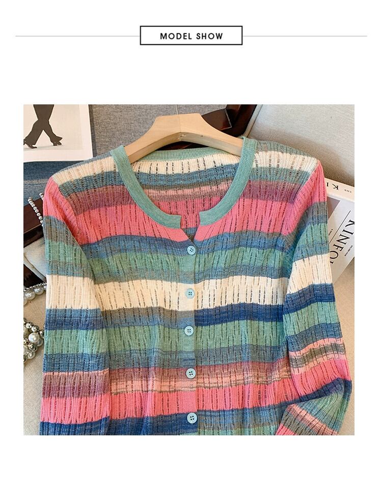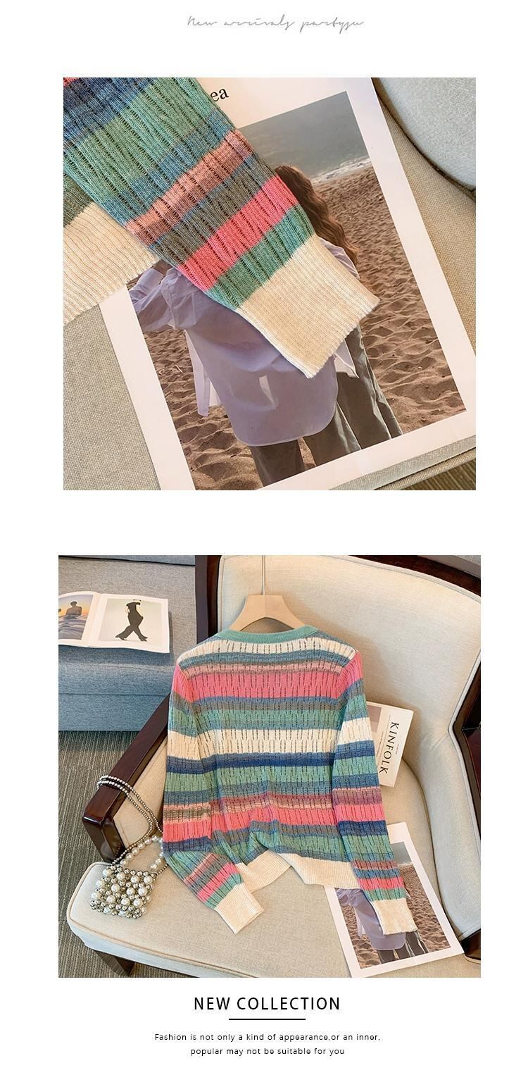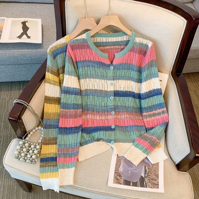 プラスサイズの女性の 2023 秋服ファット、多用途ファッションニッチ痩身セーター、カラーブロックストライプの年齢を軽減するトップス 大きめサイズ オータム 秋物 8884150584716769