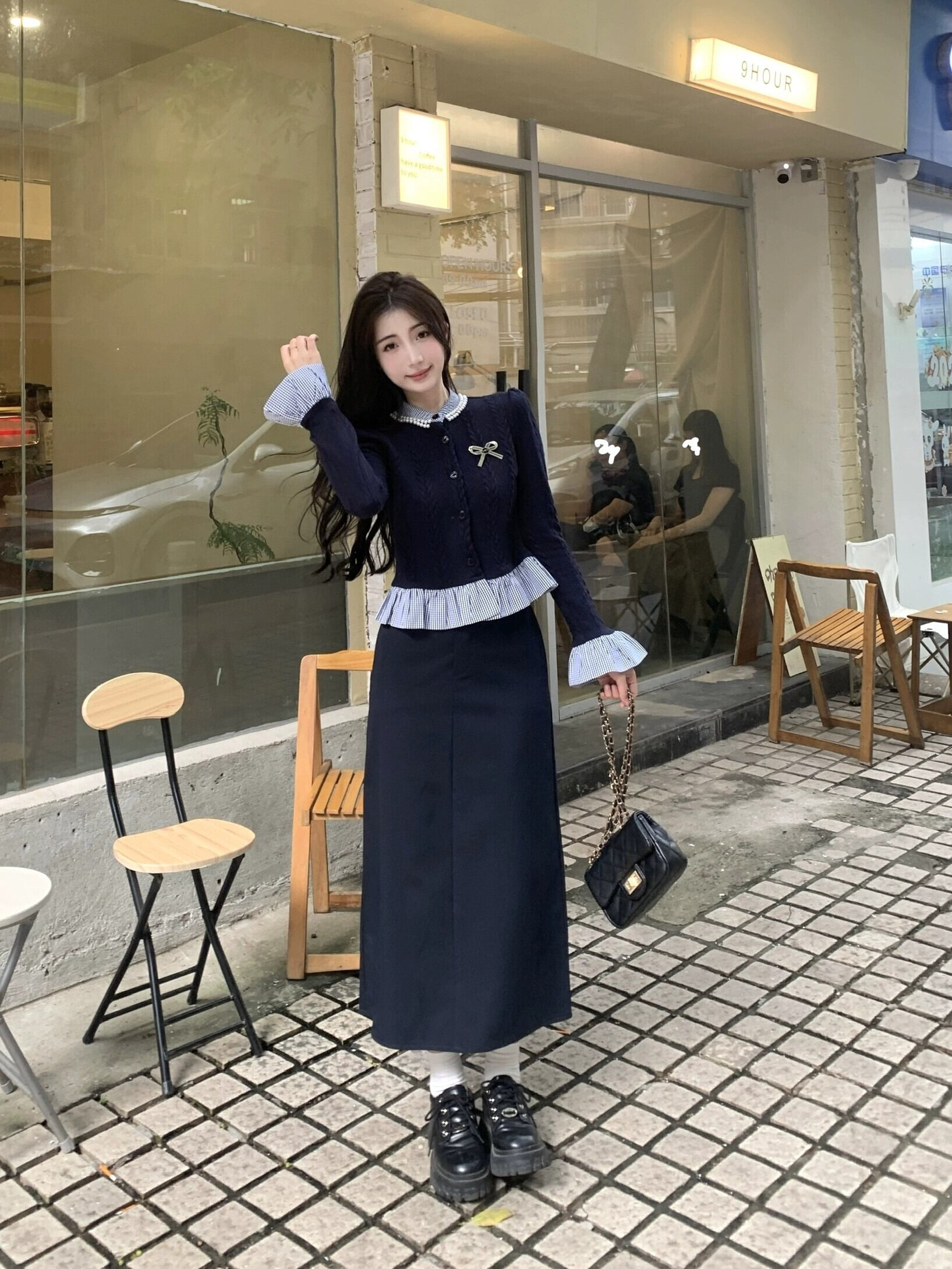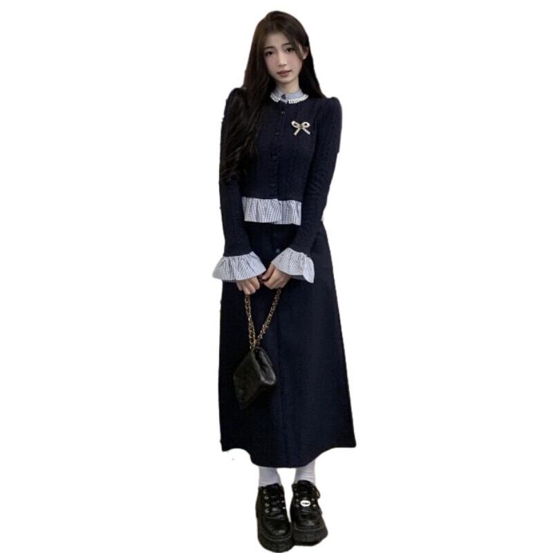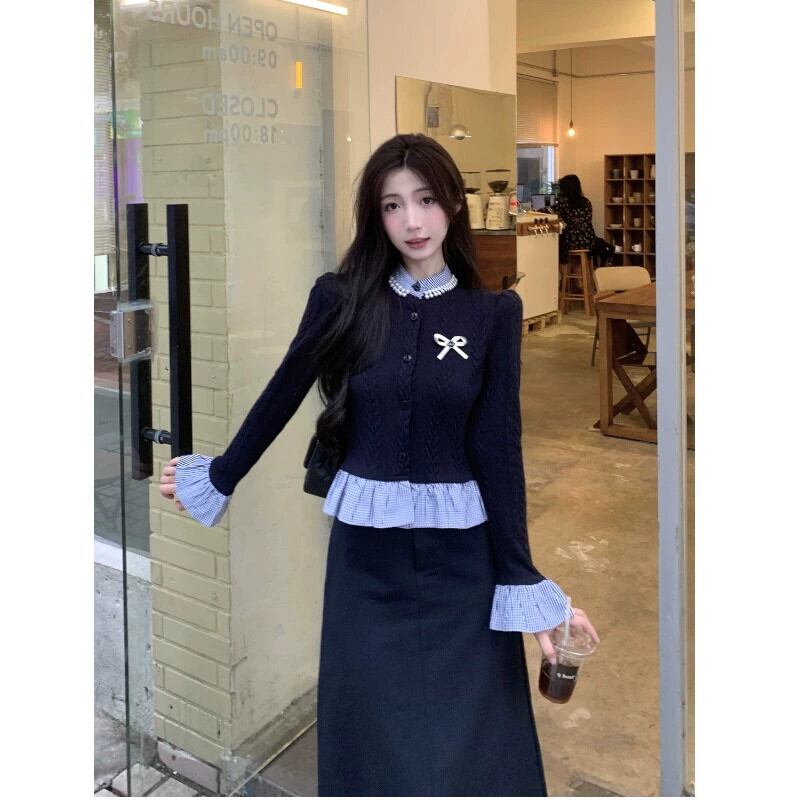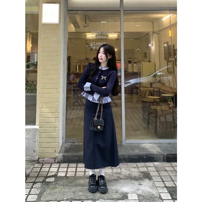 プラスサイズの女性のフレンチフェイクツーピースセーターツーピーススカートスーツ秋 2023 新しい脂肪 MM カレッジスタイルスーツ 大きめサイズ オータム 秋物 8884189997977325