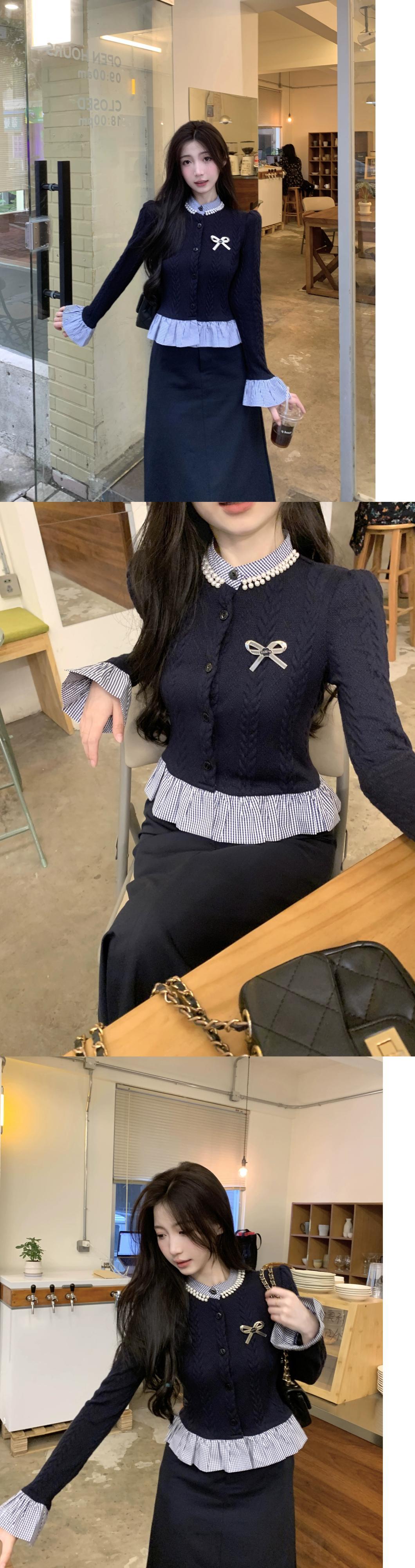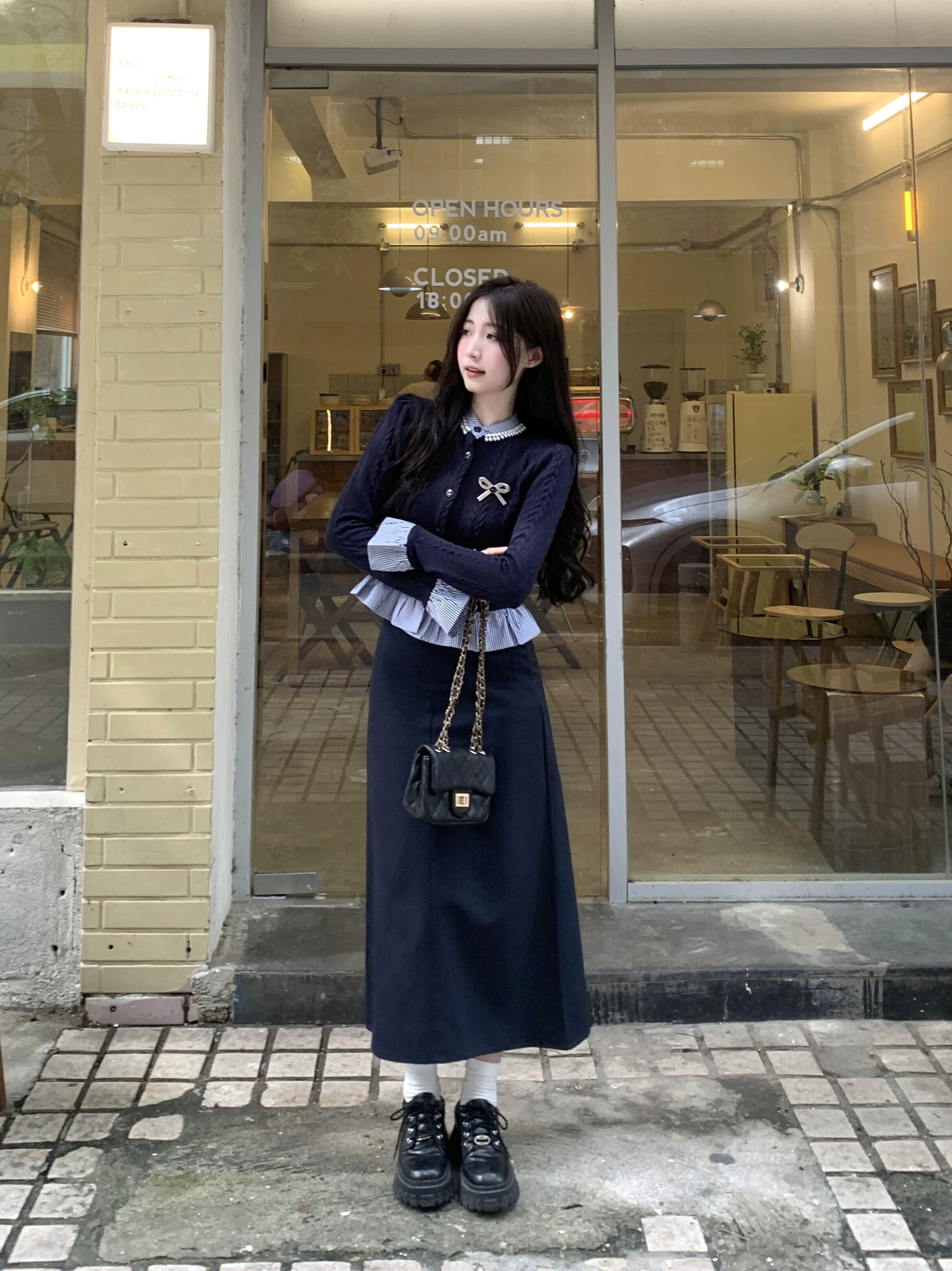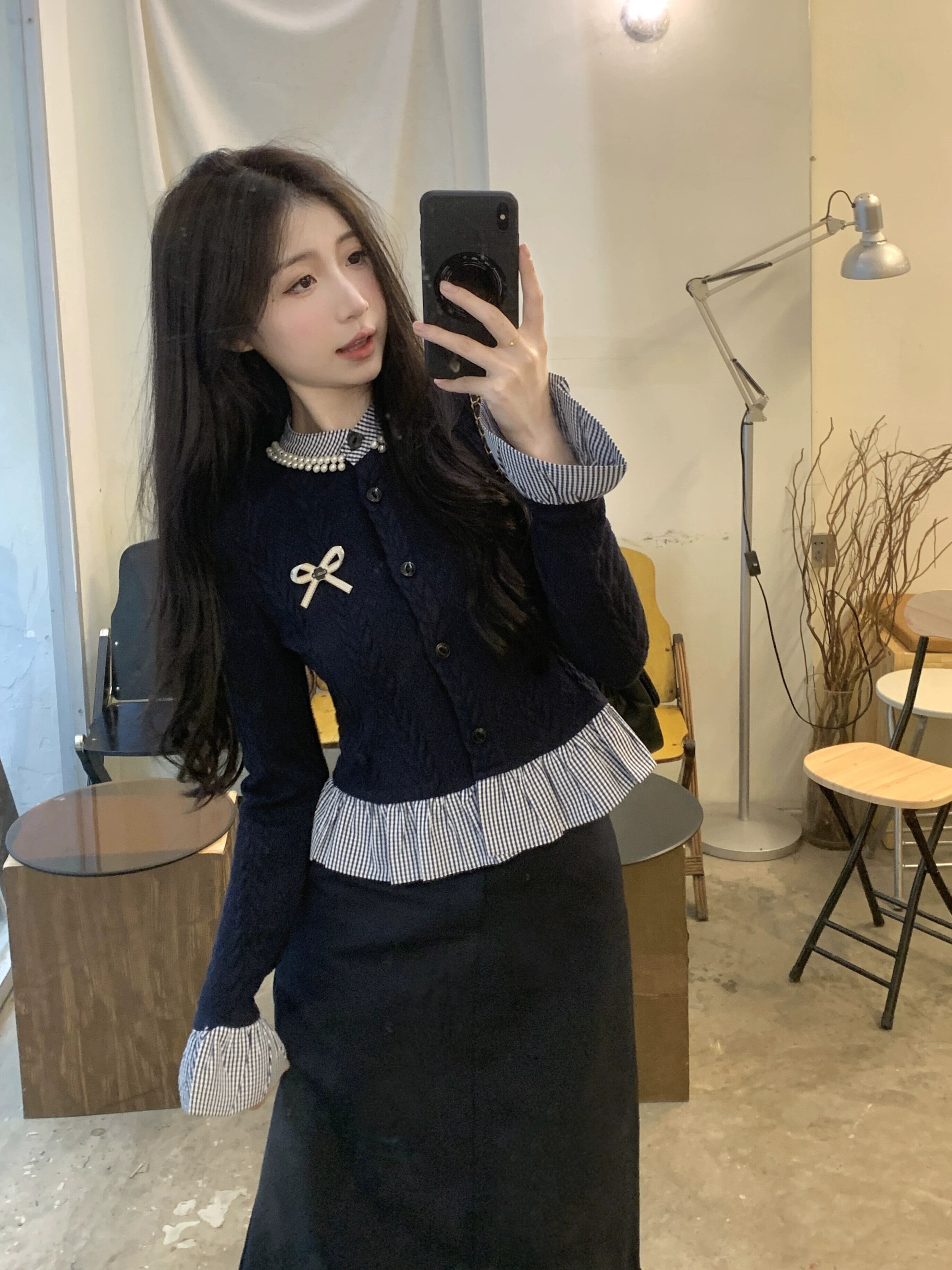 プラスサイズの女性のフレンチフェイクツーピースセーターツーピーススカートスーツ秋 2023 新しい脂肪 MM カレッジスタイルスーツ 大きめサイズ オータム 秋物 8884189997977325