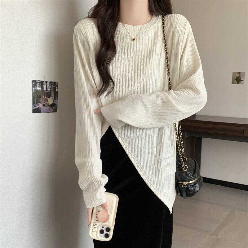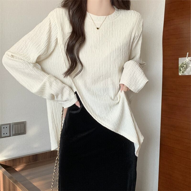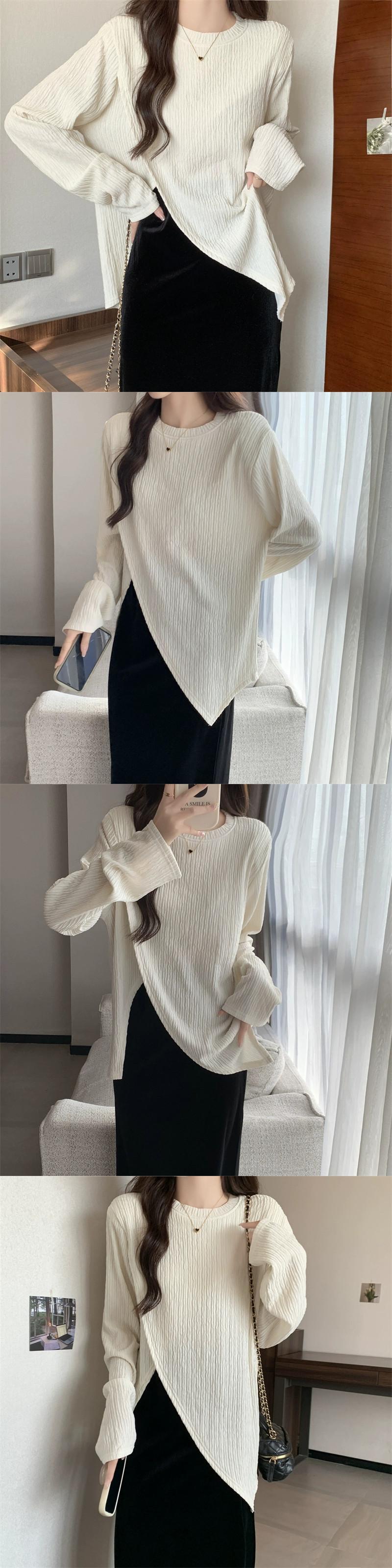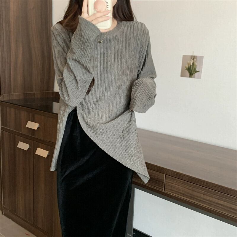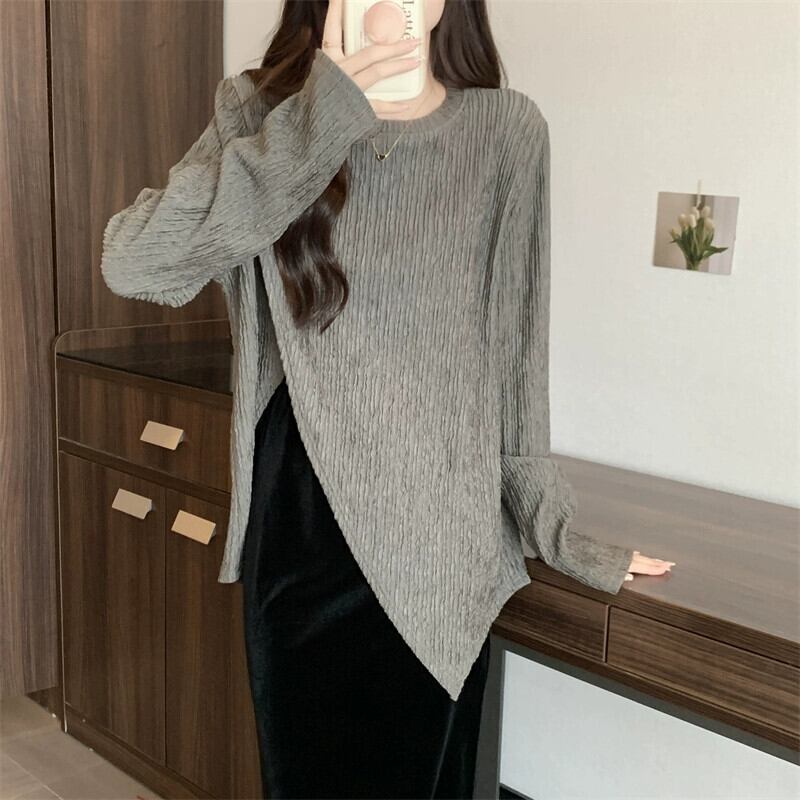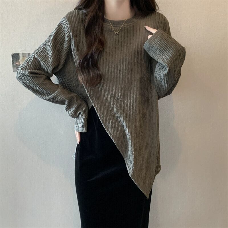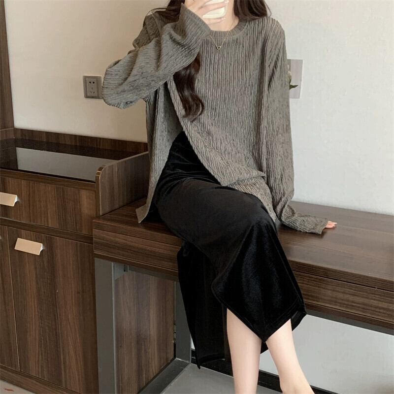 プラスサイズの婦人服 2023 ファットシスター秋の新長袖スリット底シャツトップゴールドベルベットスカート 2 点セット ロング 大きめサイズ オータム 秋物 8884187872041701