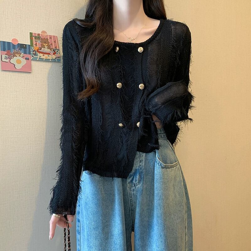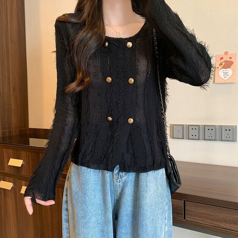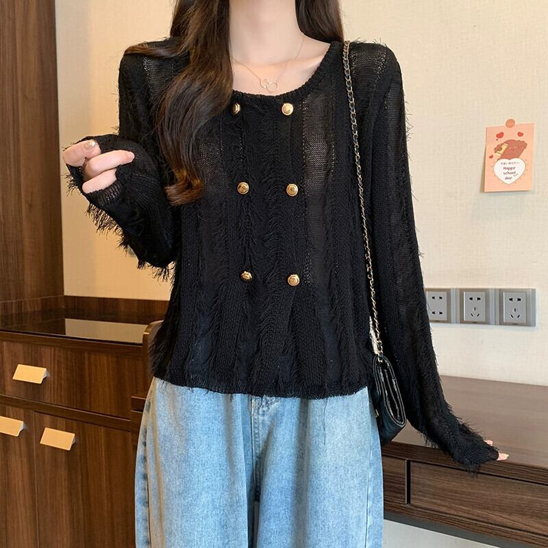 プラスサイズの女性の 2023 秋服ファット、多用途のテル ダブルブレスト セーター、カーディガン、ニッチ デザイン トップス 大きめサイズ オータム 秋物 8884134823011582