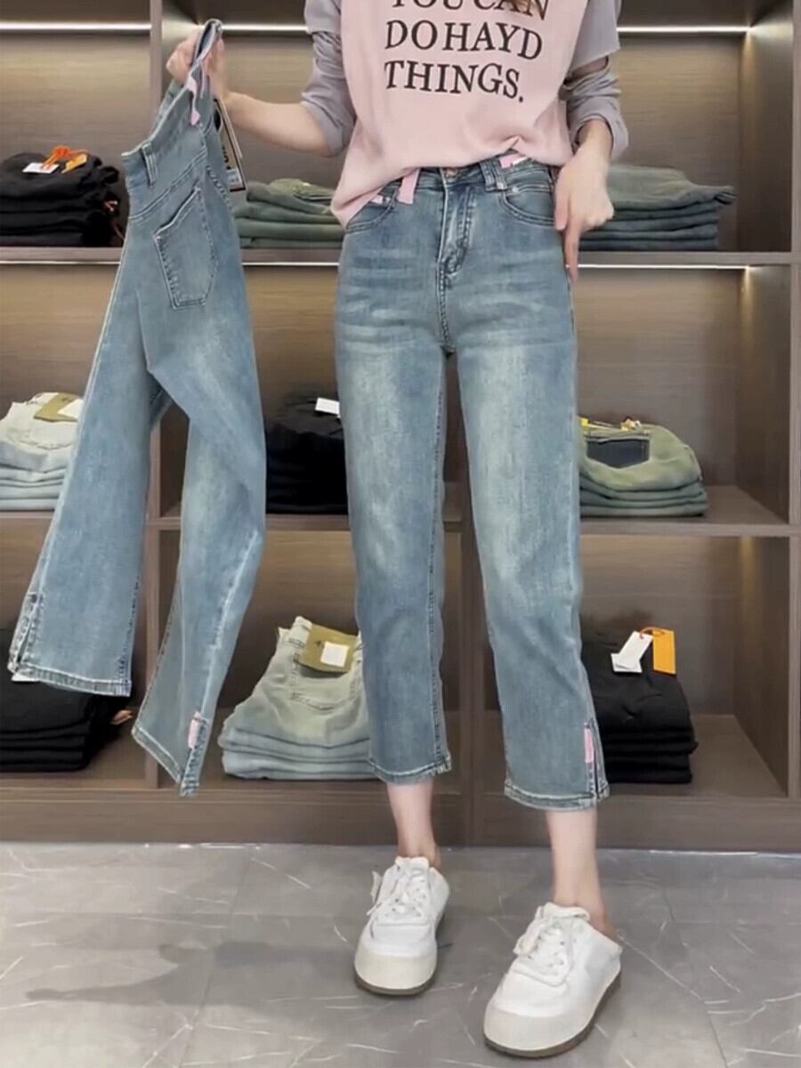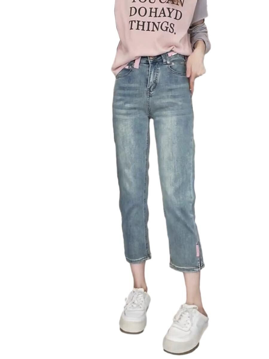 プラスサイズの女性のぽっちゃり夏梨型ハイウエスト小柄スリムストレート 79 ポイントカジュアルパンツシガレットパイプジーンズ 大きめサイズ 8884159246814561
