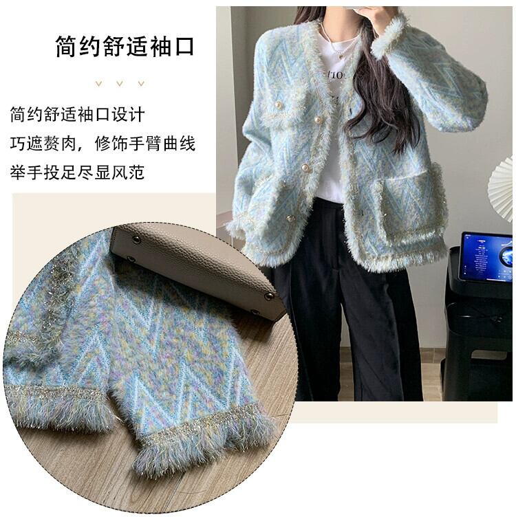 プラスサイズの婦人服 2023 ファットシスター秋服新ファッション模造ミンクウール多用途ウールセーターシングルブレストジャケット 大きめサイズ オータム 秋物 8884190613133327