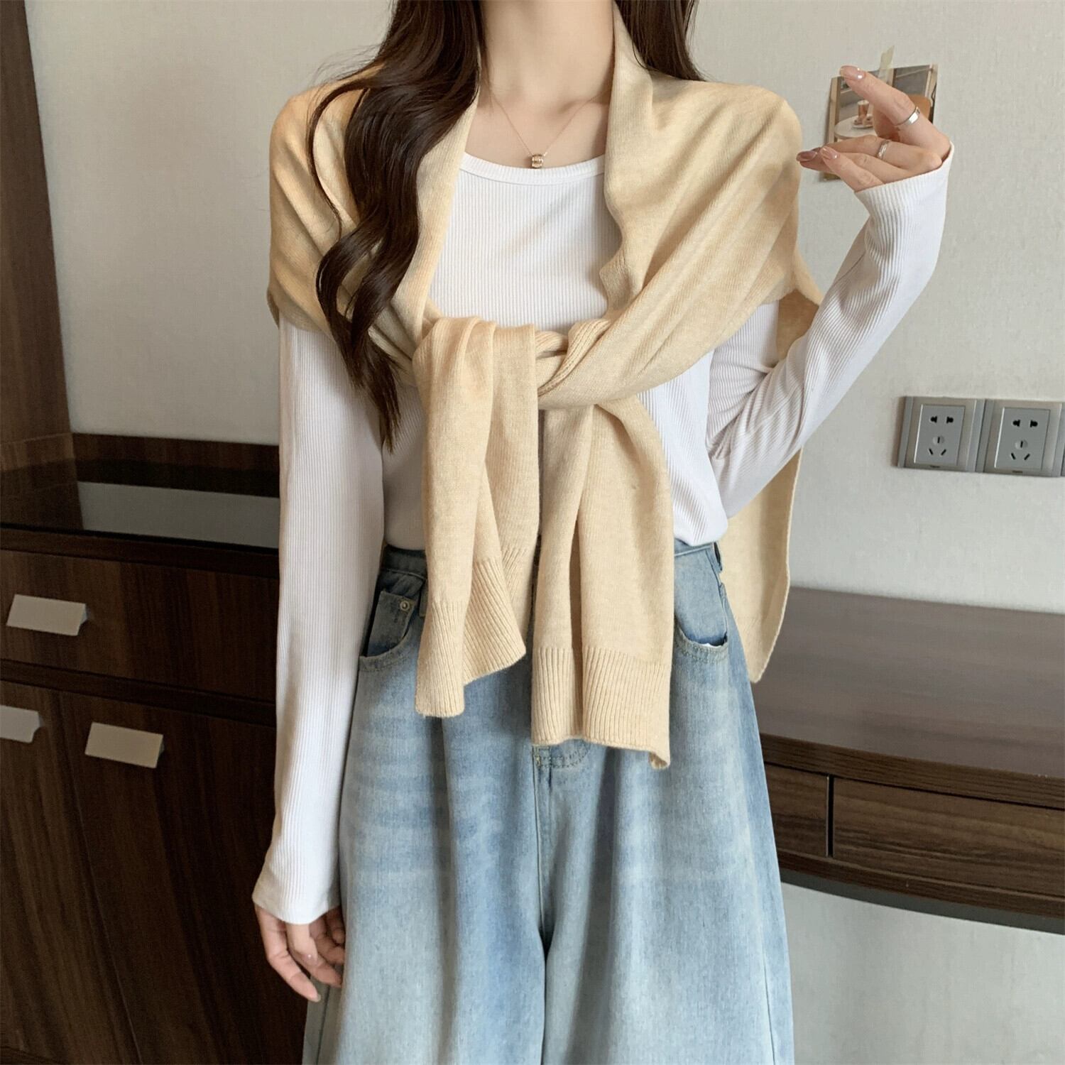 プラスサイズの女性の 2023 ファットシスター秋スタイルショール空調部屋外部スカーフニットネックプロテクター暖かい偽の首輪 大きめサイズ オータム 秋物 8884132362806551