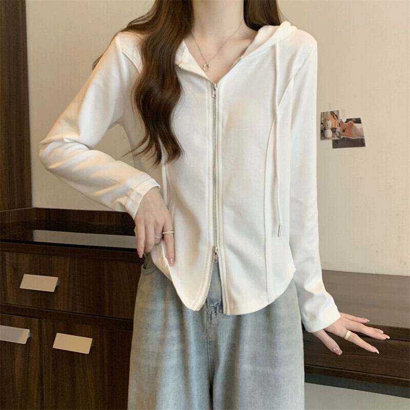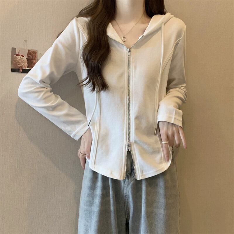 プラスサイズの婦人服 2023 秋服ファットスタイルカジュアルオールマッチフード付きセーターカーディガン長袖ジッパートップ ロング 大きめサイズ オータム 秋物 8884196127677081