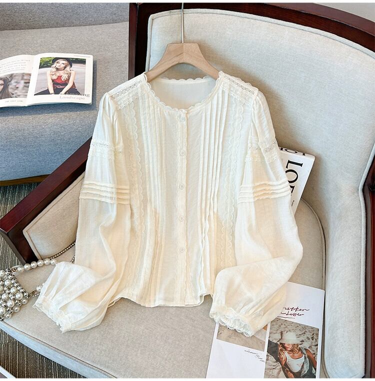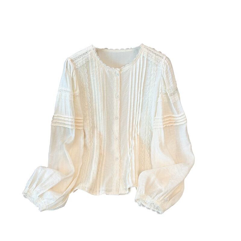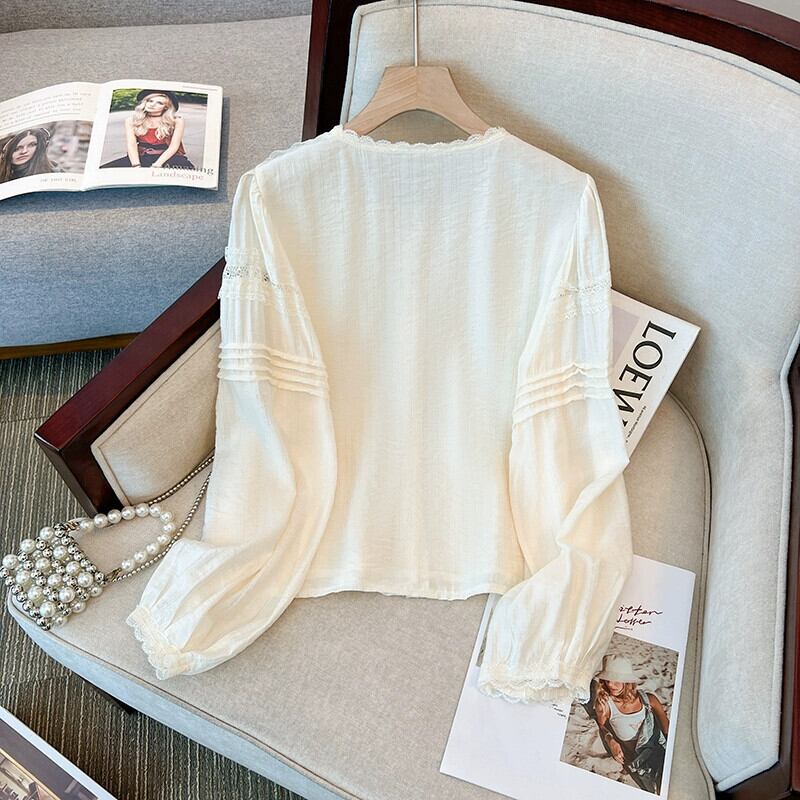 プラスサイズの婦人服 2023 トレンディな秋の新ファットラウンドネック長袖レースシャツデザインニッチ年齢軽減トップス ロング 大きめサイズ オータム 秋物 Oネック 8884181570576178