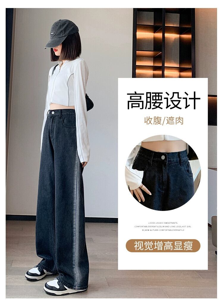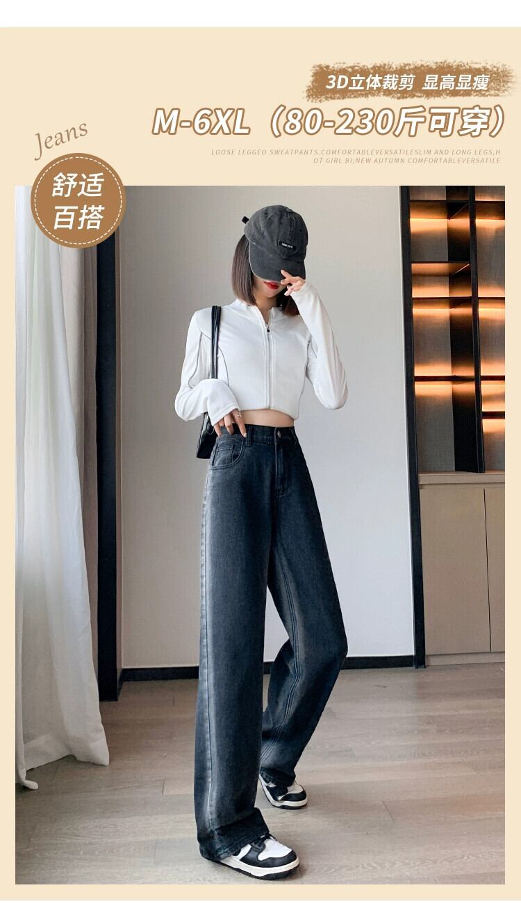 プラスサイズの婦人服 2023 秋服脂肪デザイングラデーションジーンズハイウエストファッション多用途ストレートパンツ ハイウェスト 大きめサイズ オータム 秋物 8884196611976433