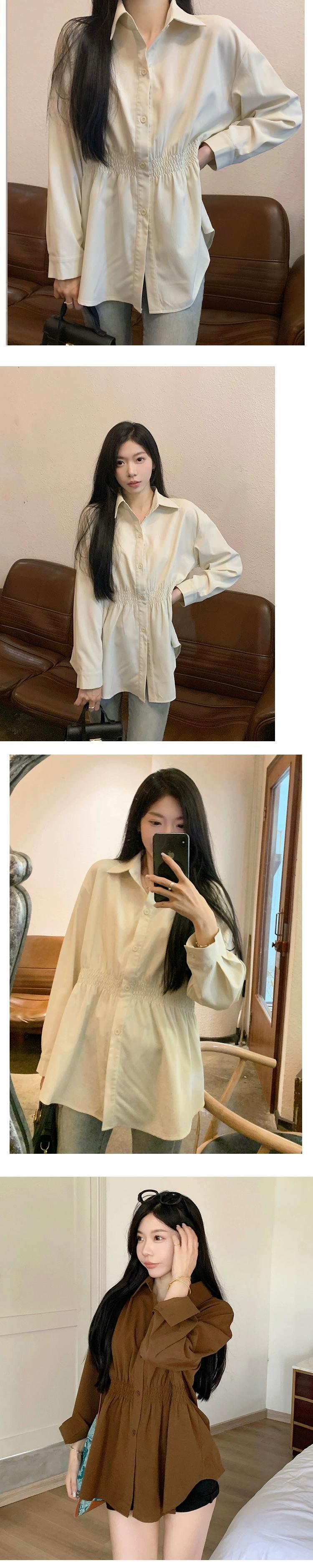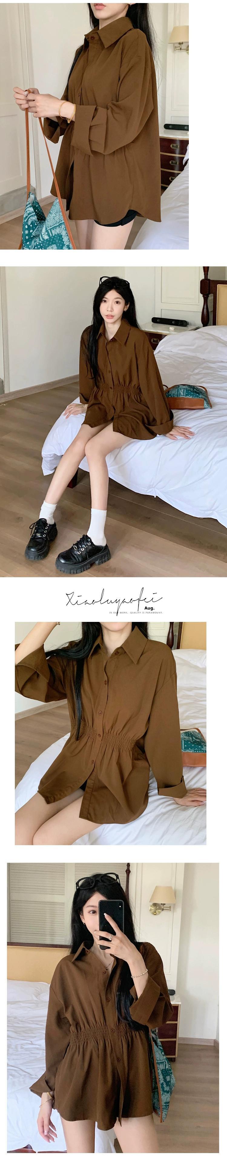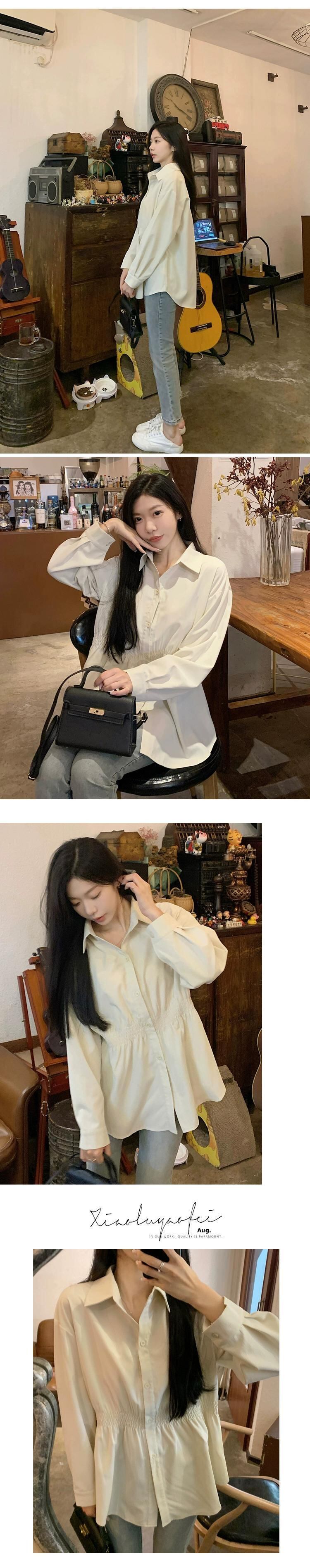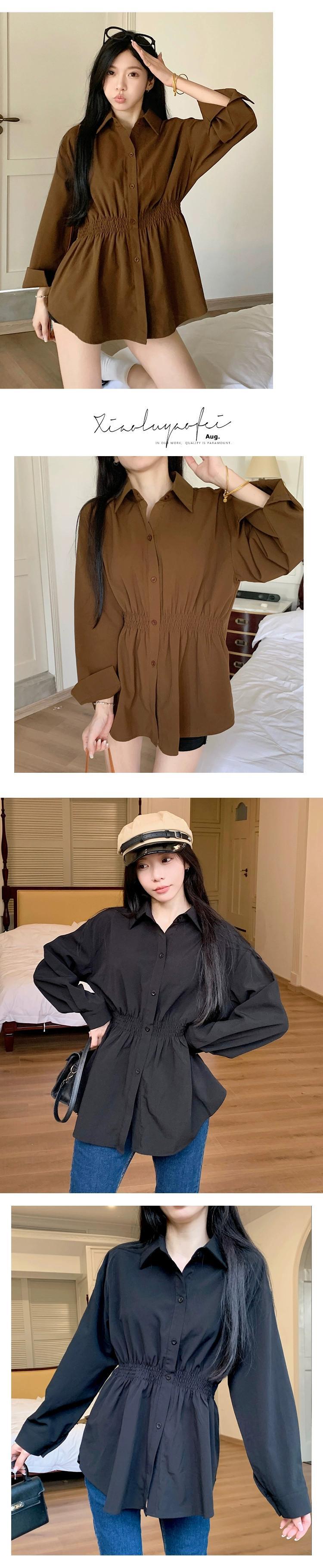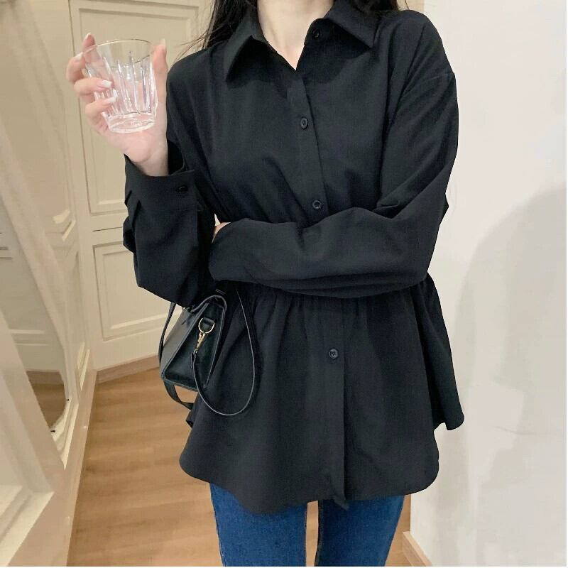 大きいサイズのポロカラー長袖シフォンシャツ 2023 秋の新作レディースファット mm カジュアルお腹カバー痩身トップ ロング 大きめサイズ オータム 秋物 8884176852865740