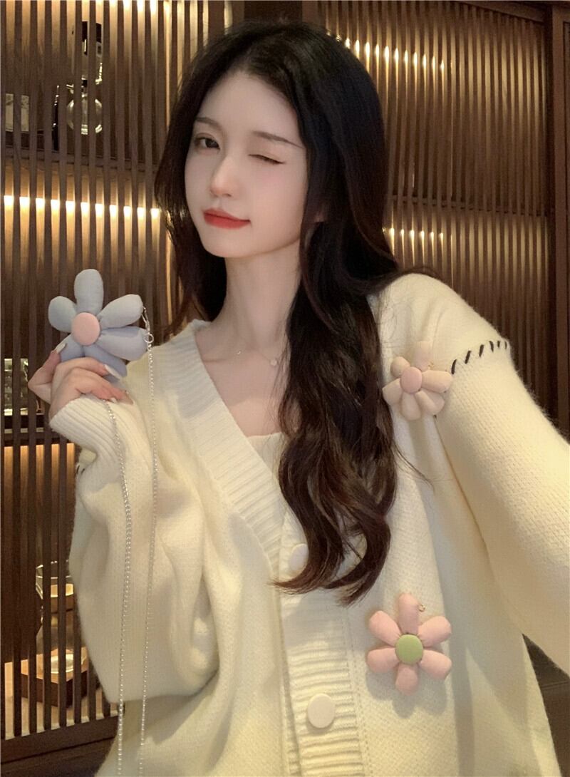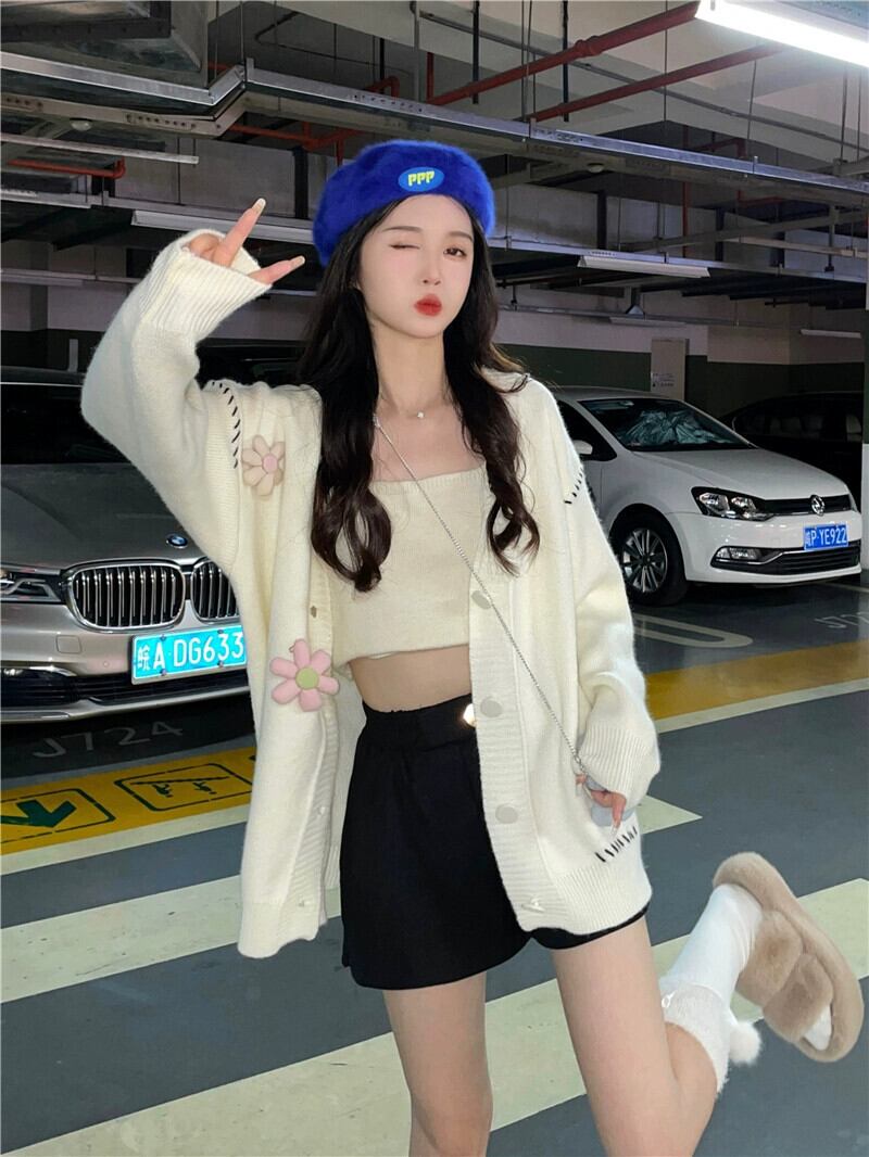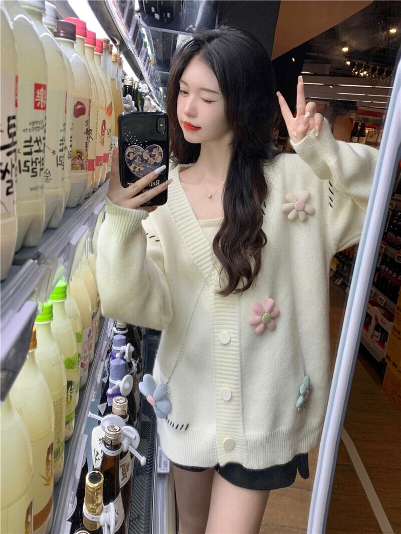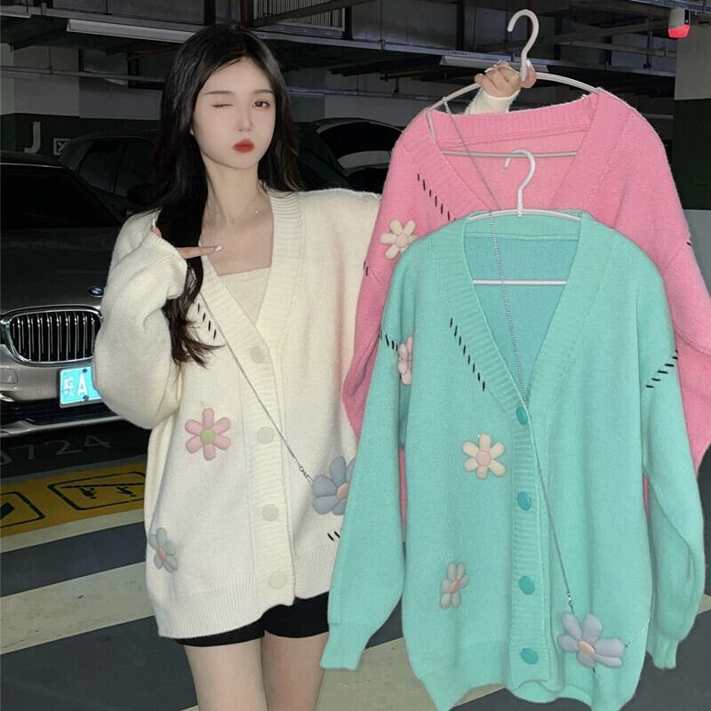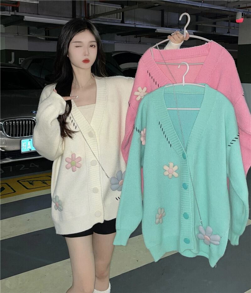 プラスサイズの婦人服 2023 脂肪姉妹秋服新フランス多用途カーディガンセータールース小花コートセーター 大きめサイズ オータム 秋物 フラワーデザイン 8884134388977242