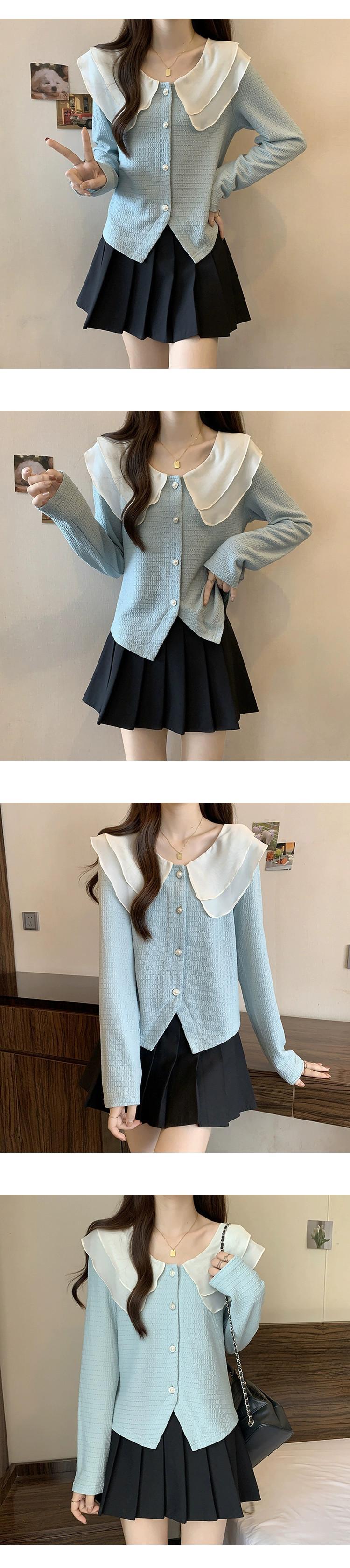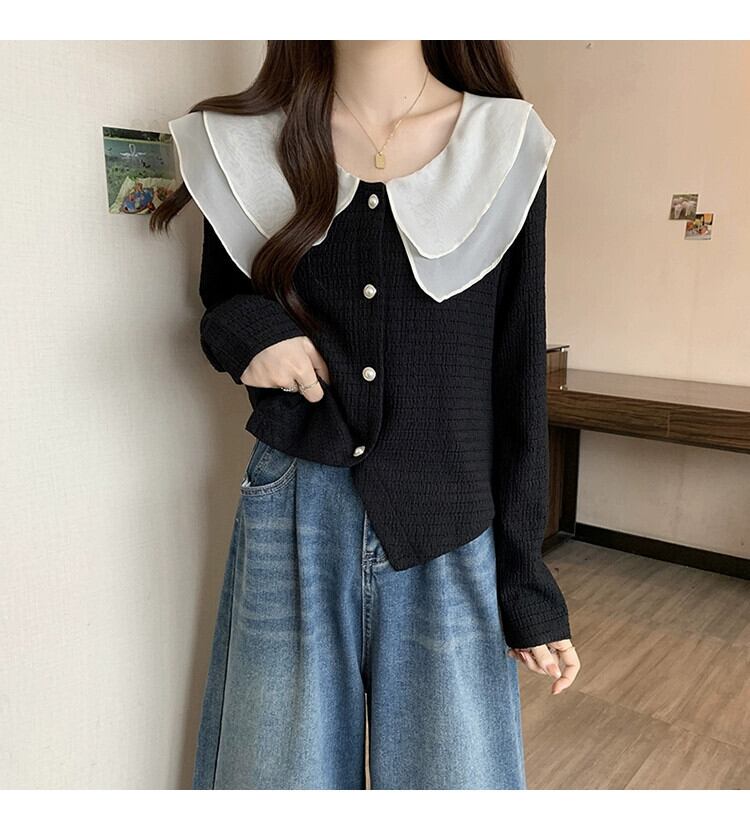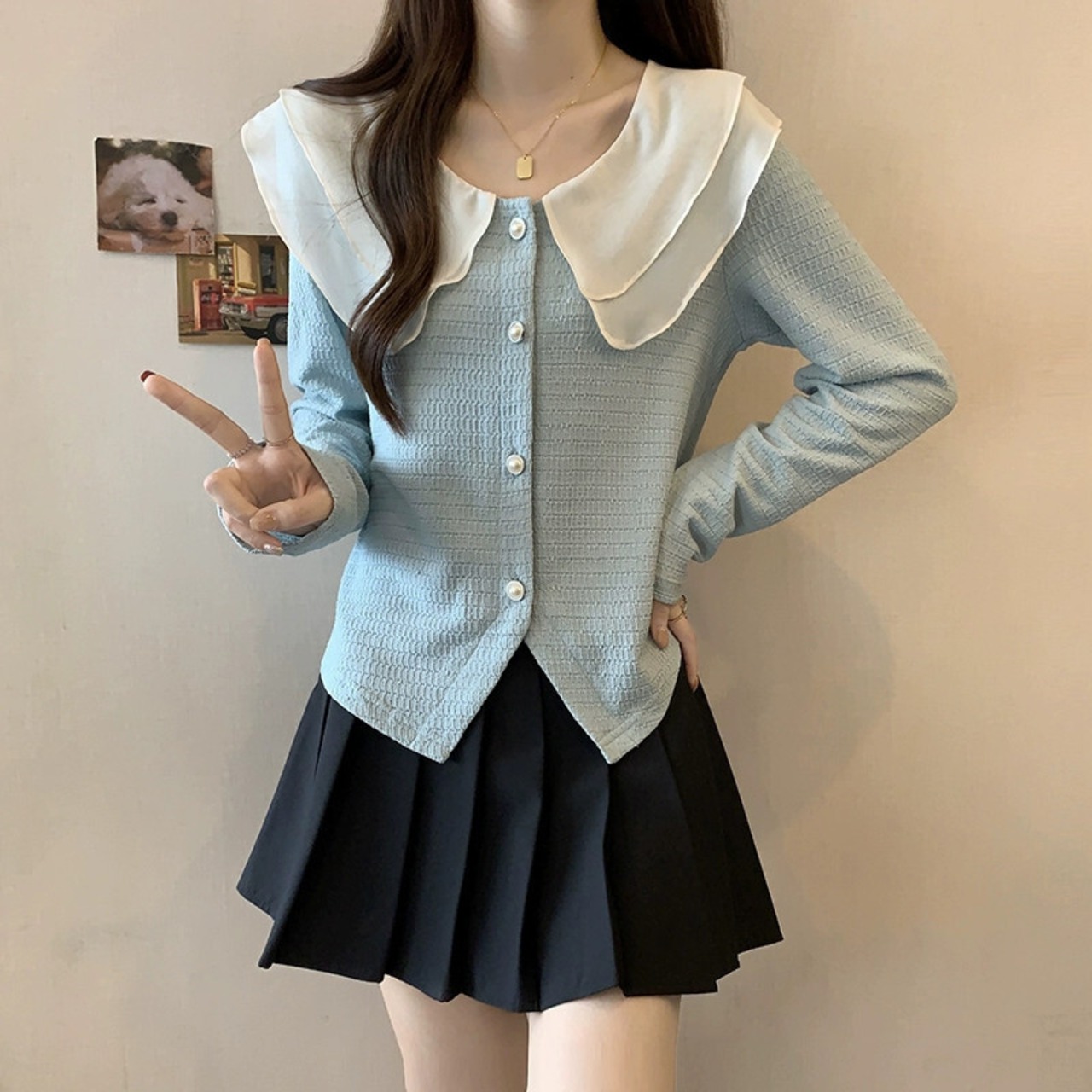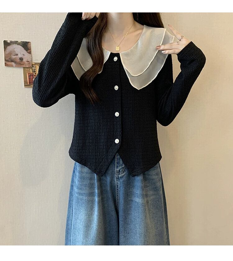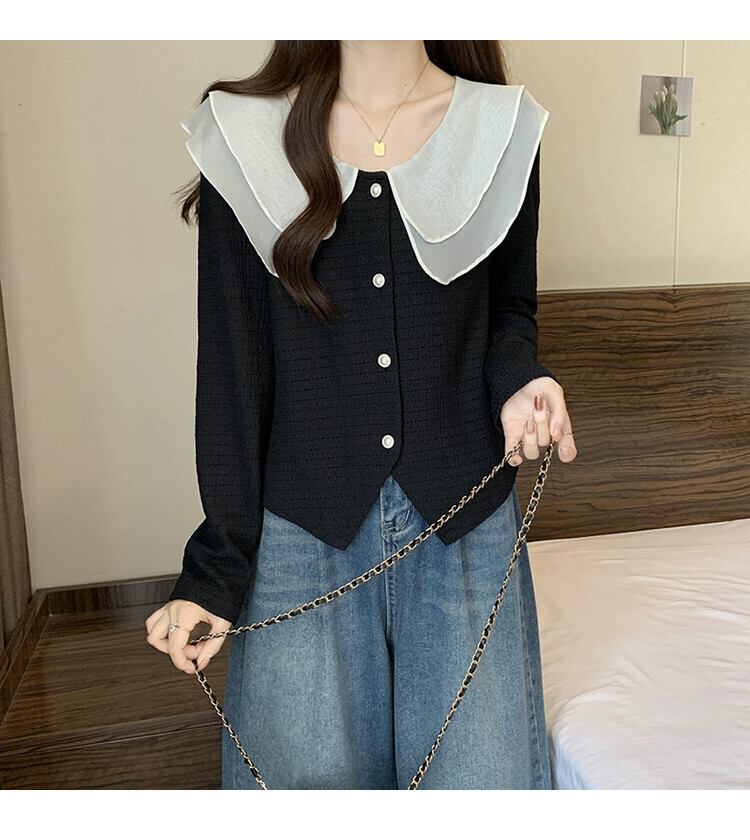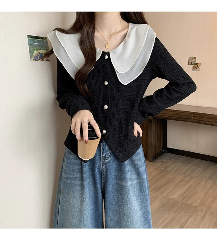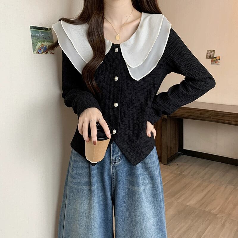 プラスサイズの婦人服 2023 トレンディな秋の新ファットシスター二重層フリルトップ人形襟テクスチャード年齢削減シャツ レッド 大きめサイズ オータム 秋物 8884131550655923