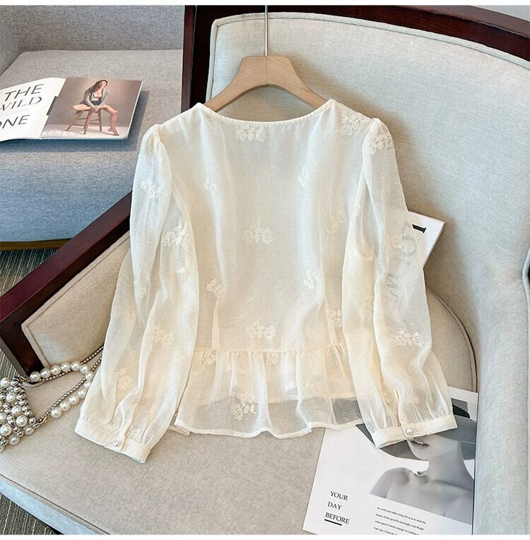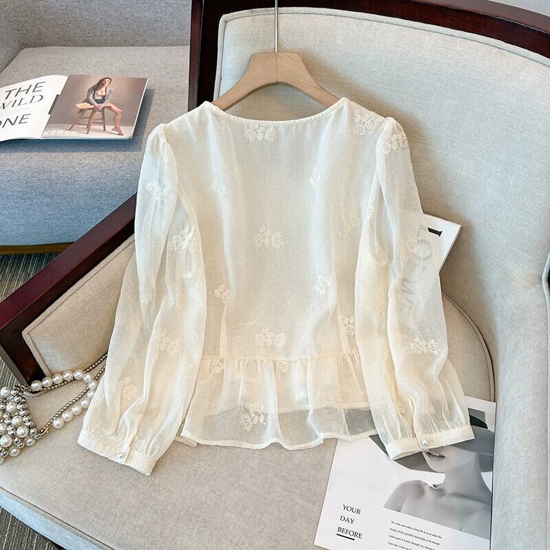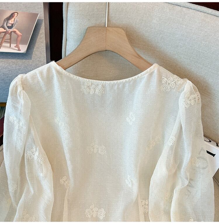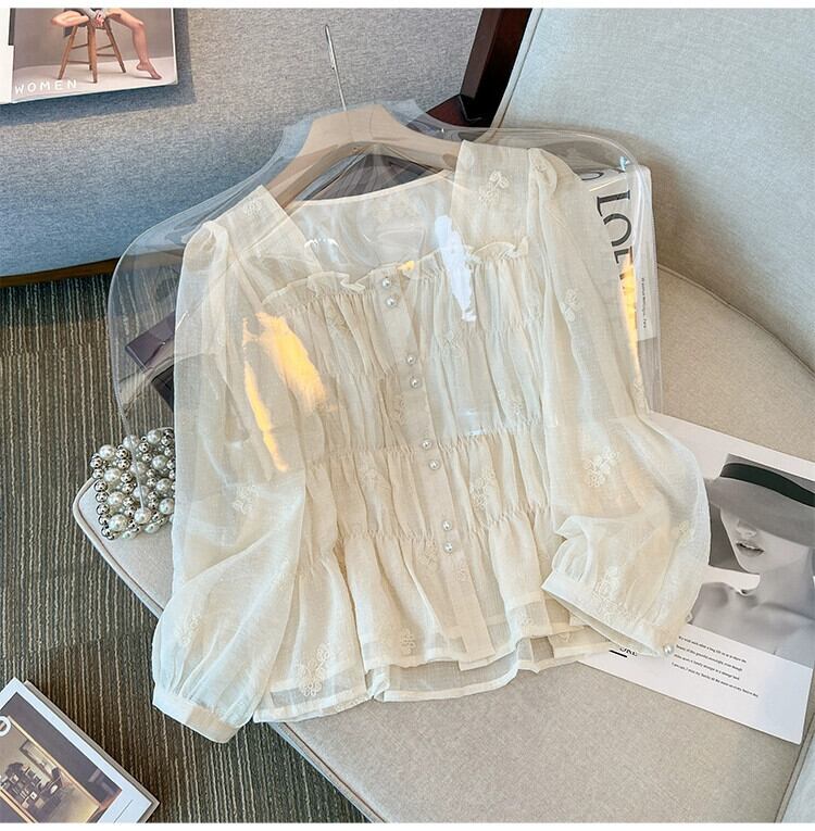 プラスサイズの婦人服 2023 トレンディな秋の新ファットシスタープリーツスクエアカラーシフォン長袖シャツハイエンド老化防止トップ ロング 大きめサイズ オータム 秋物 スクウェア 8884112769369846