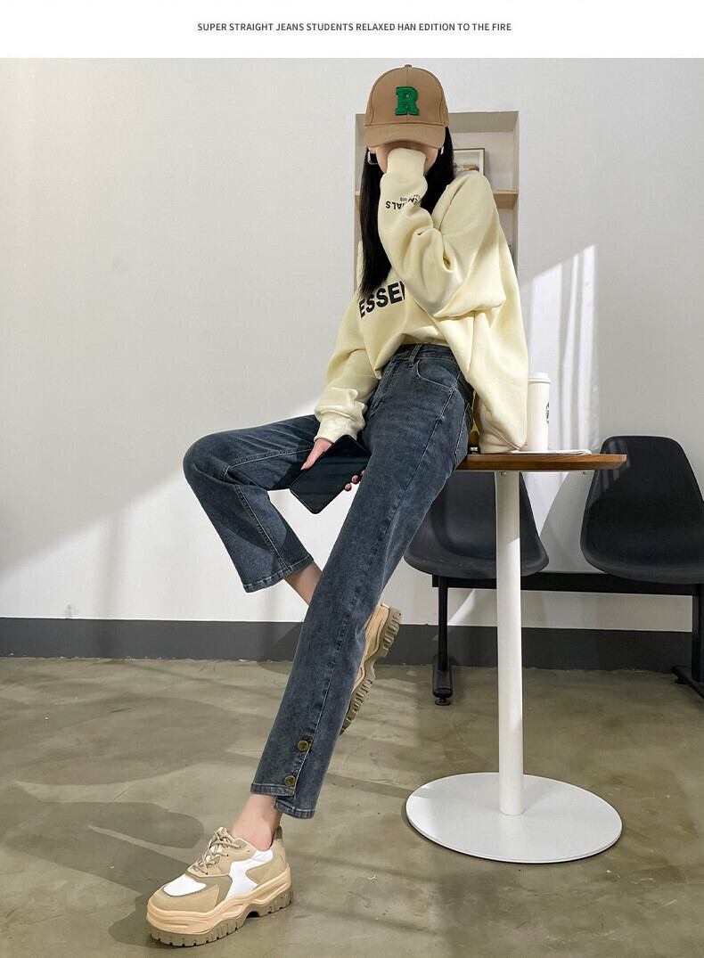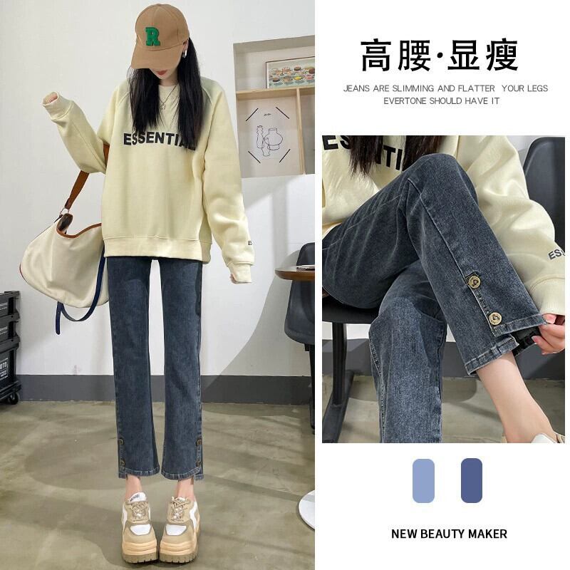 プラスサイズの女性のファットMM秋の新モデルの肉を覆うストレートジーンズハイウエストとスリムなレトロ9点タバコパイプパンツ 大きめサイズ オータム 秋物 888415282822411