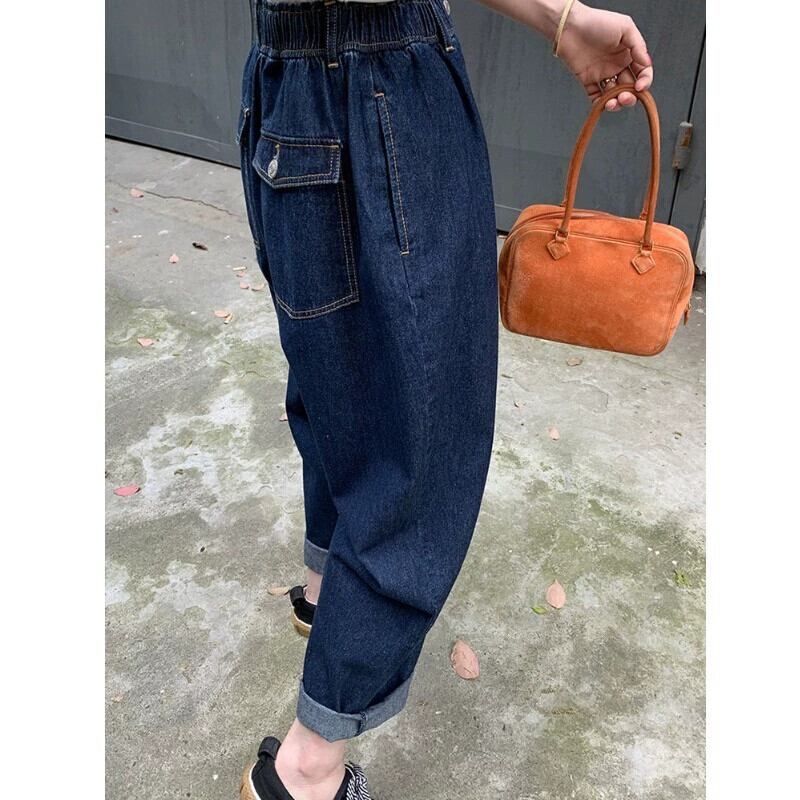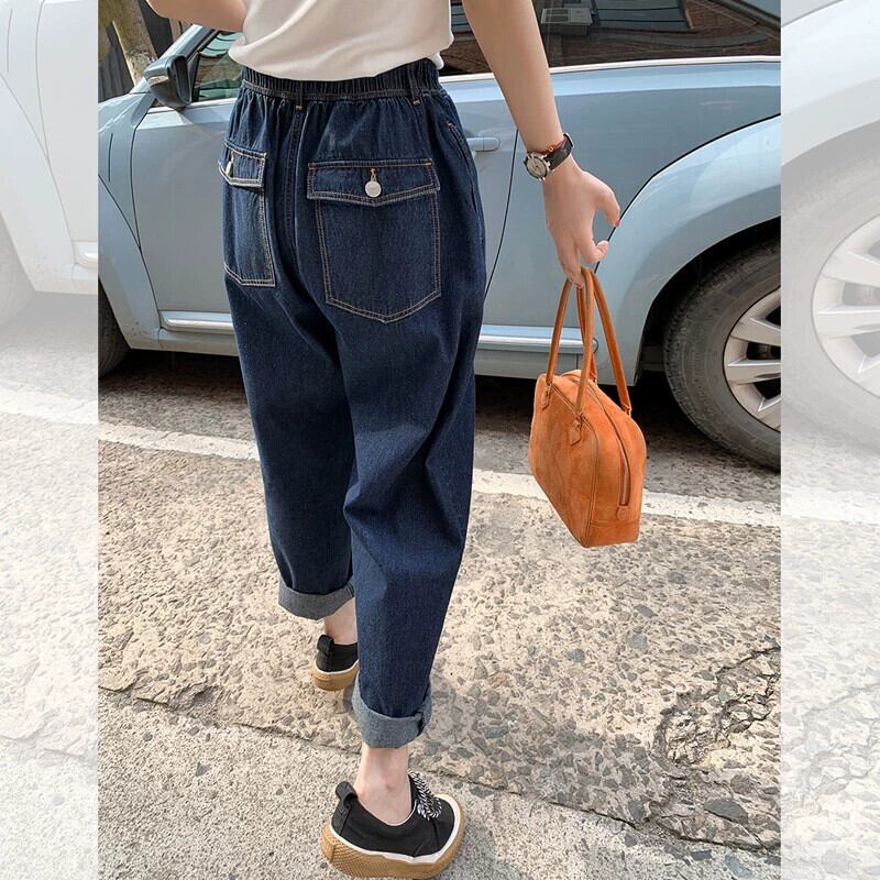 プラスサイズの婦人服 2023 新しい脂肪姉妹弾性ウエスト秋のジーンズの女性のスリムハーレムワイドレッグお父さんパンツ エラスティック 伸縮 大きめサイズ オータム 秋物 ワイドパンツ 8884166097141401