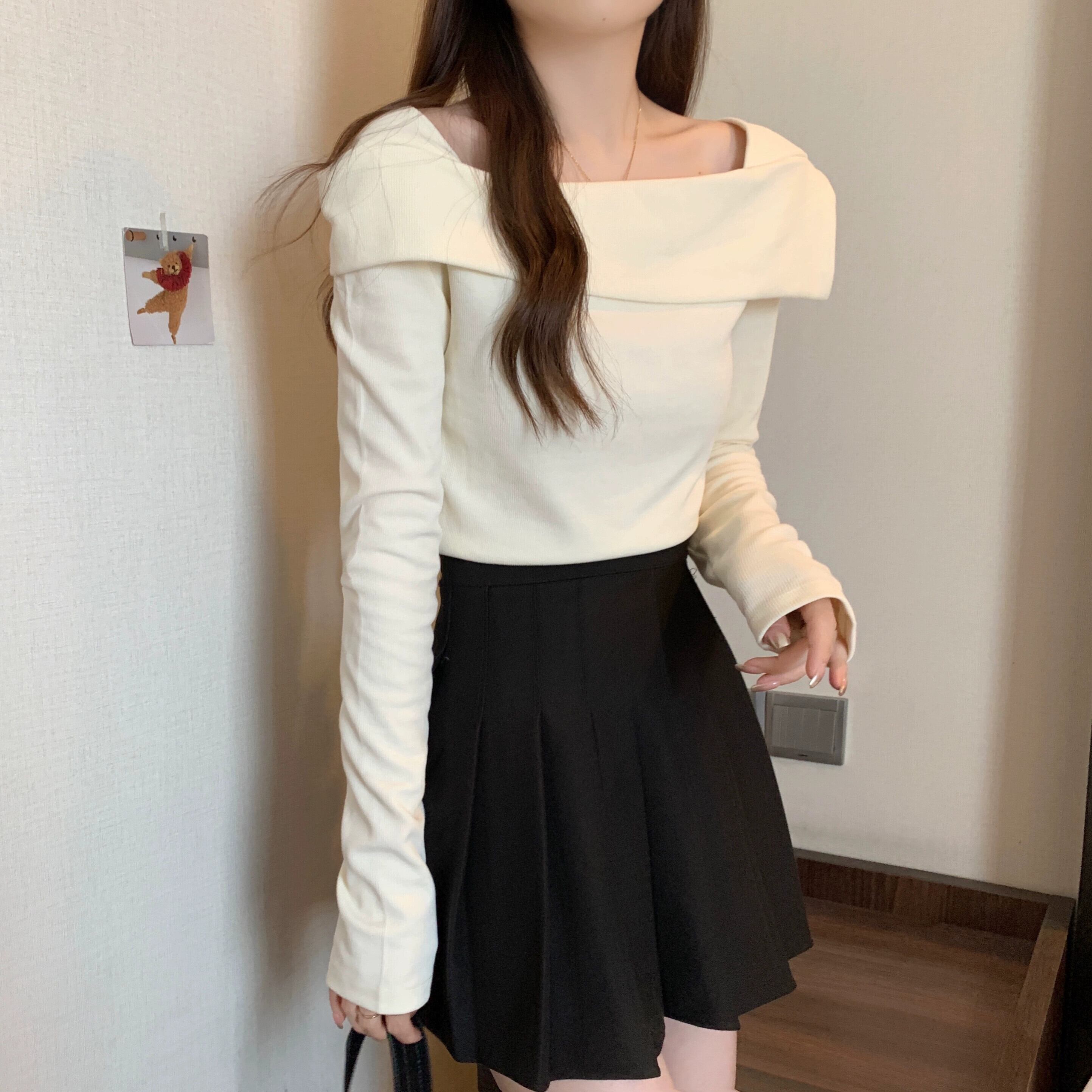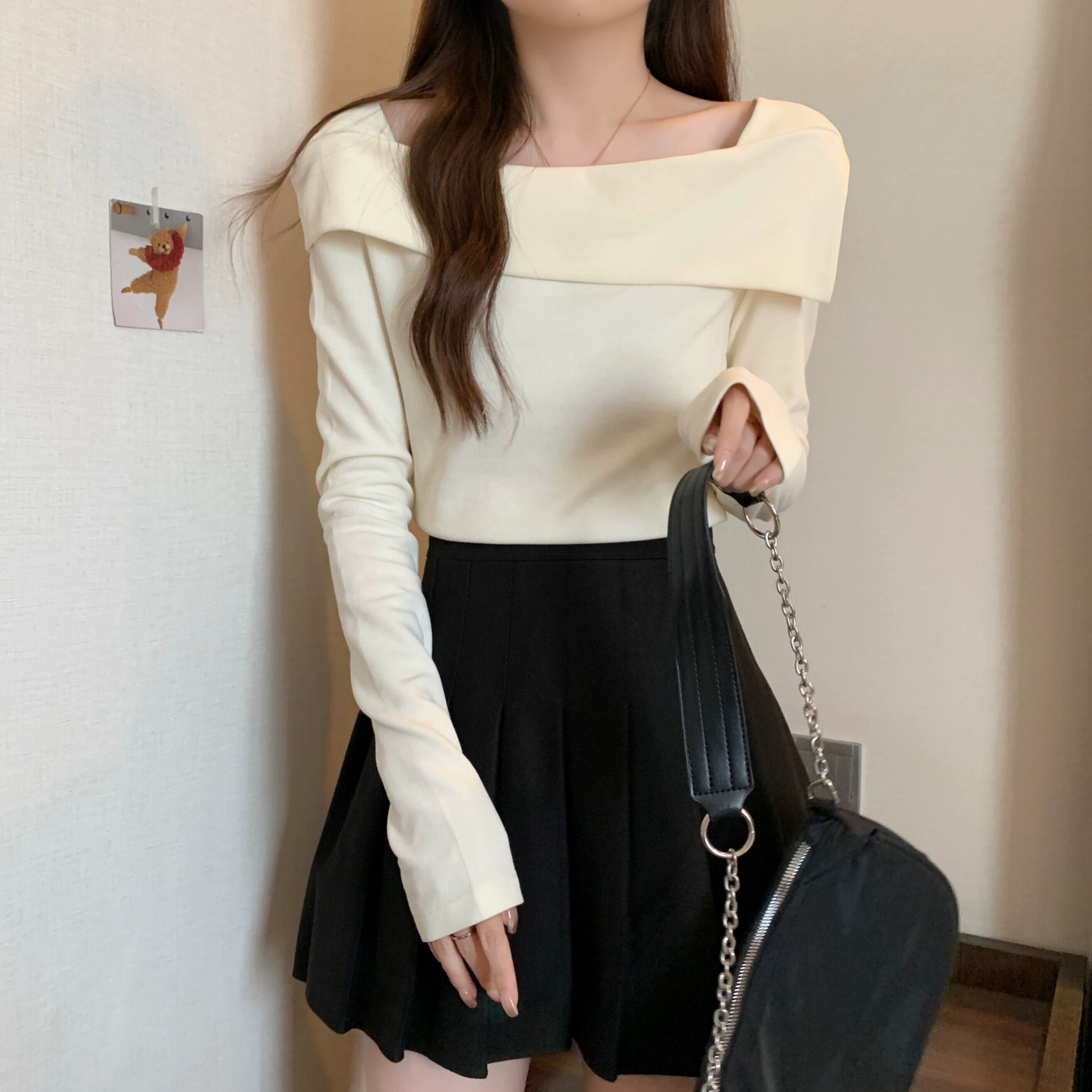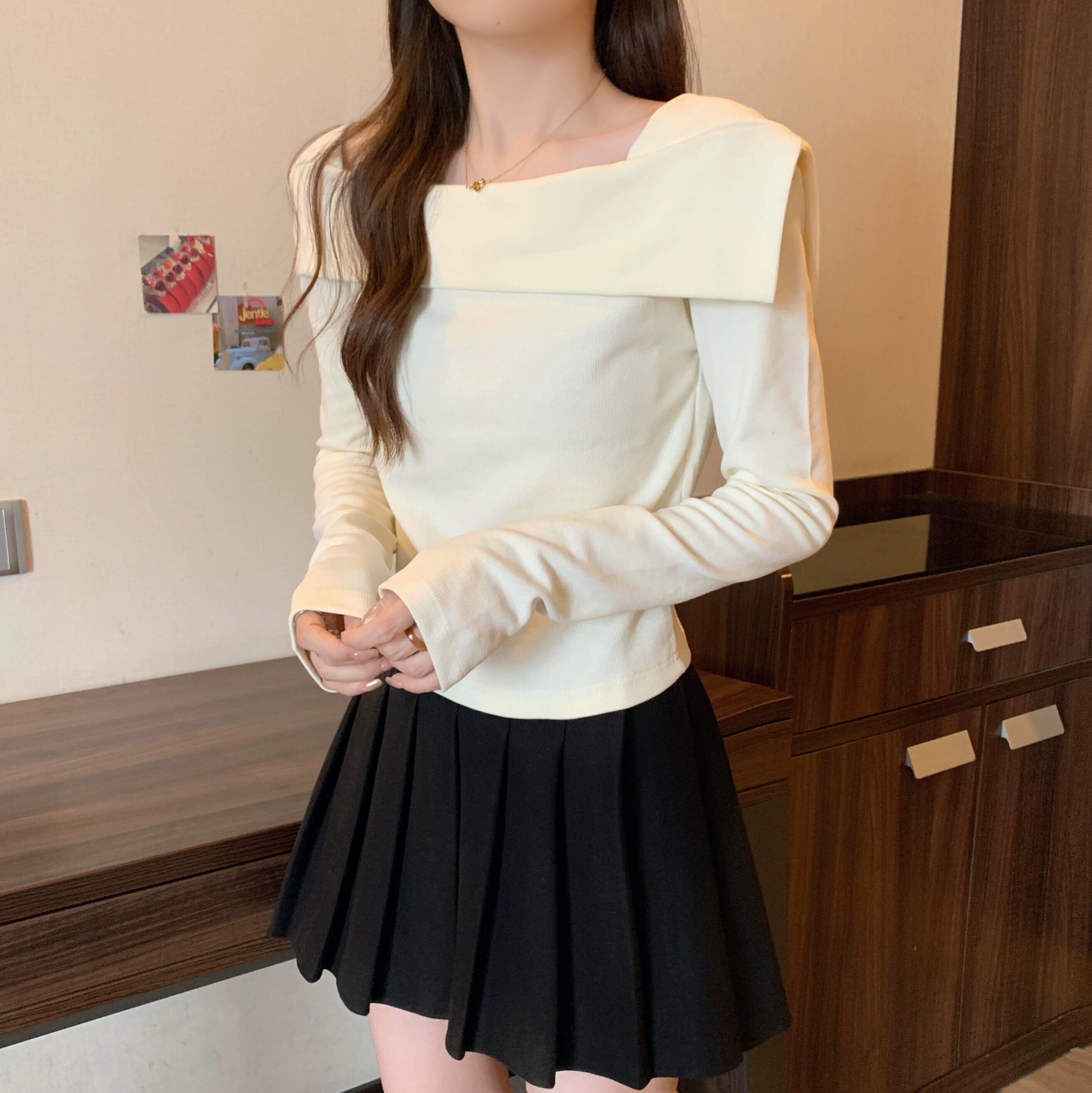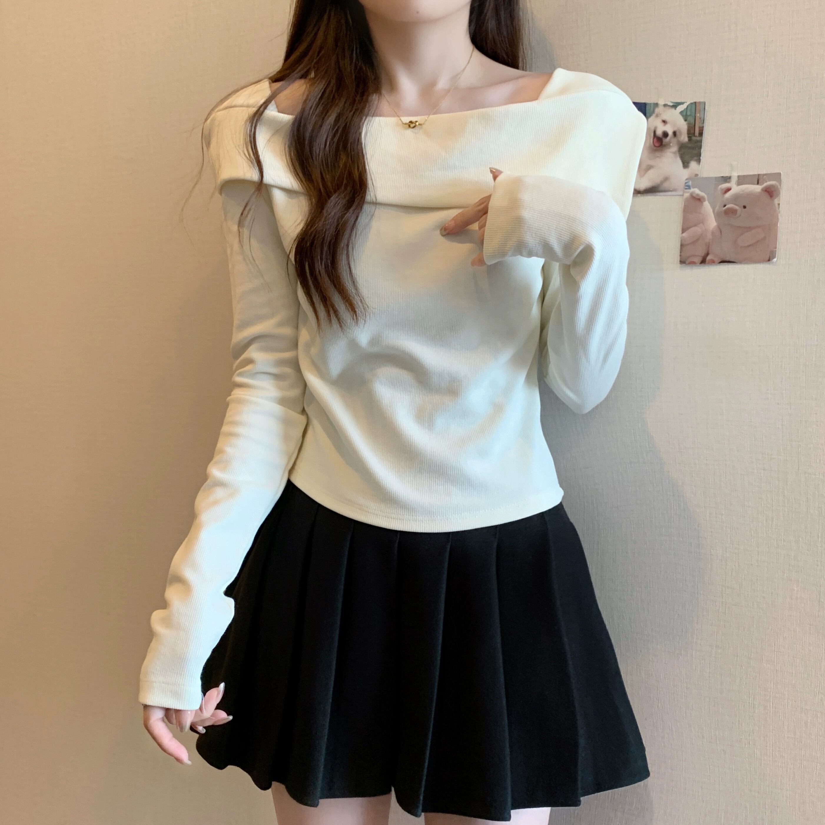 プラスサイズの女性の 2023 秋服ファットファッショナブルなワンショルダーデザインニットボトムシャツ無地多用途トップ 大きめサイズ オータム 秋物 ソリッドカラー 8884169651872934