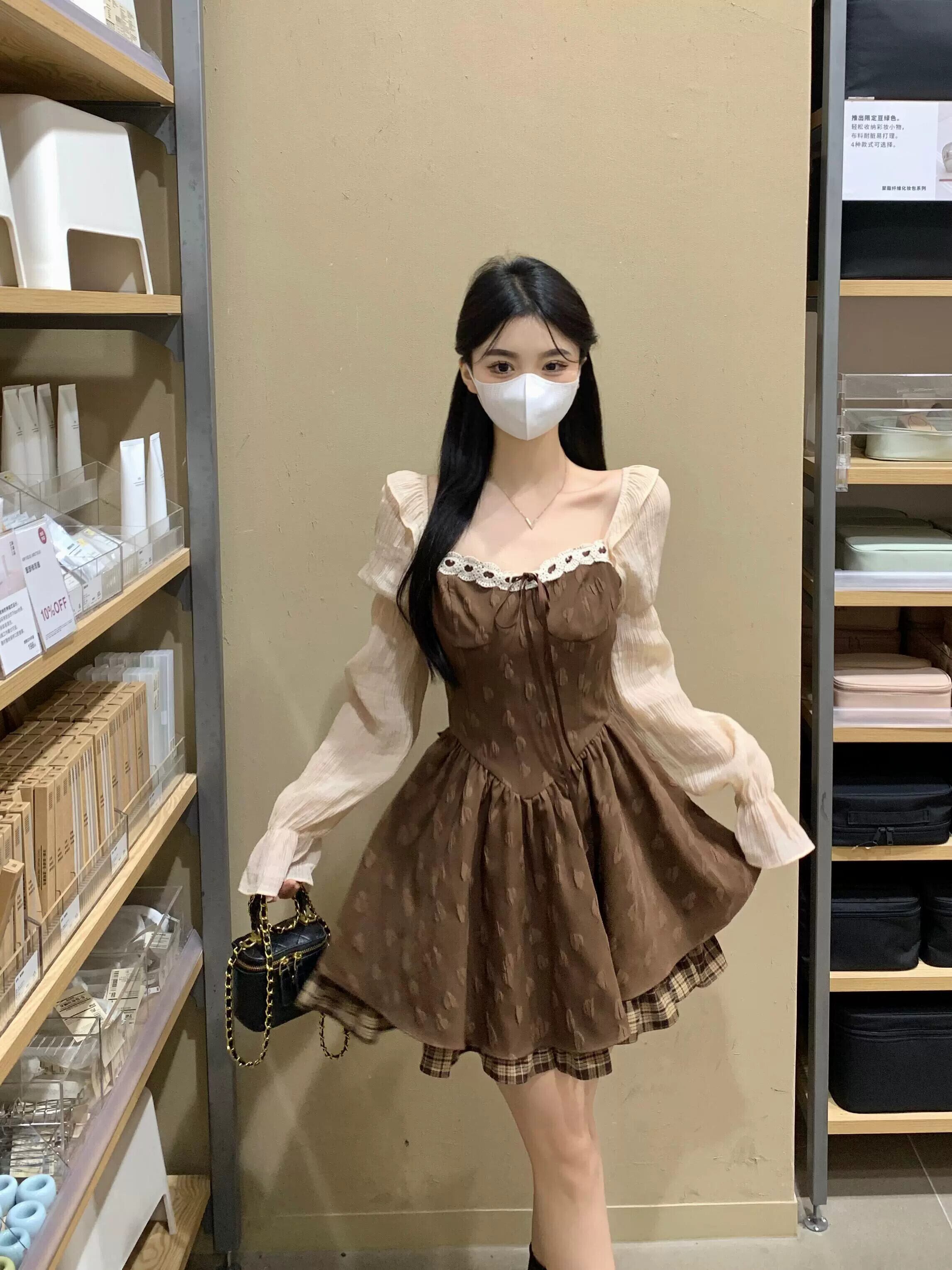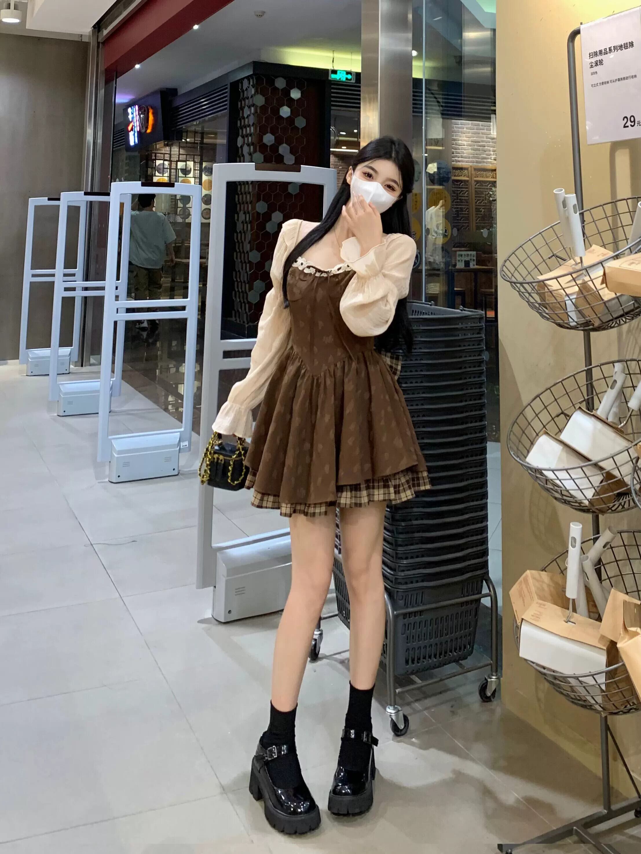 プラスサイズの婦人服 2023 ファットシスター秋の新甘いスカートバックビッグリボンデザインステッチドレス 大きめサイズ 大人ガーリー スウィート キュート カジュアル オータム 秋物 8884122088856239