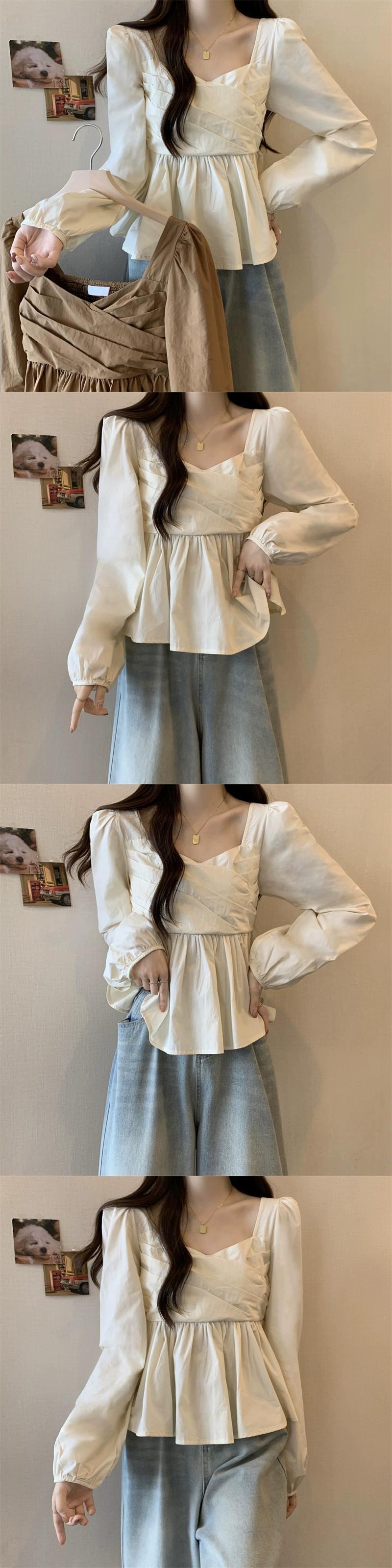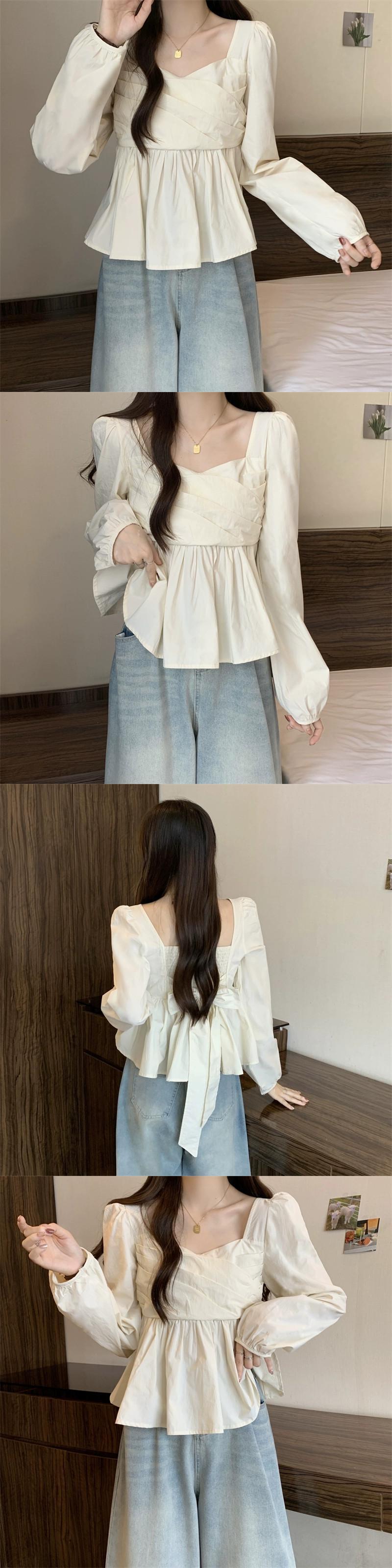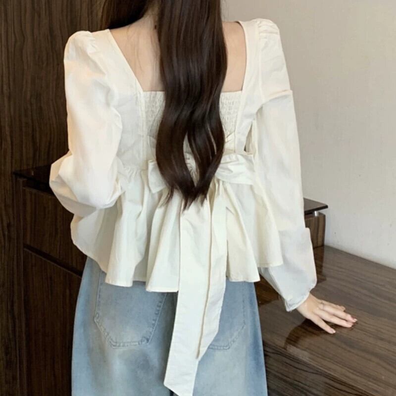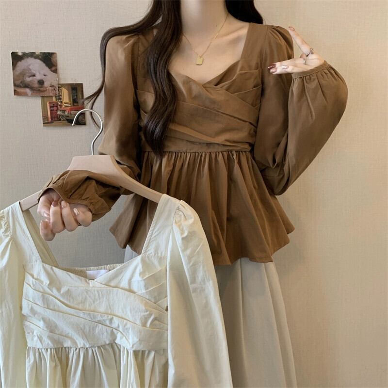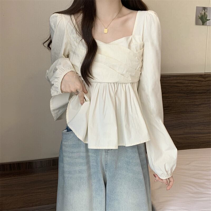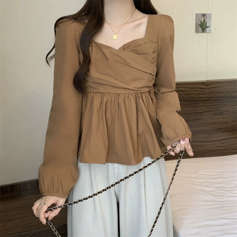 プラスサイズの婦人服 2023 秋服脂肪デザインフレンチソリッドカラーシフォンシャツカジュアルスクエアカラー菌トップ 大きめサイズ オータム 秋物 スクウェア 8884194095927479
