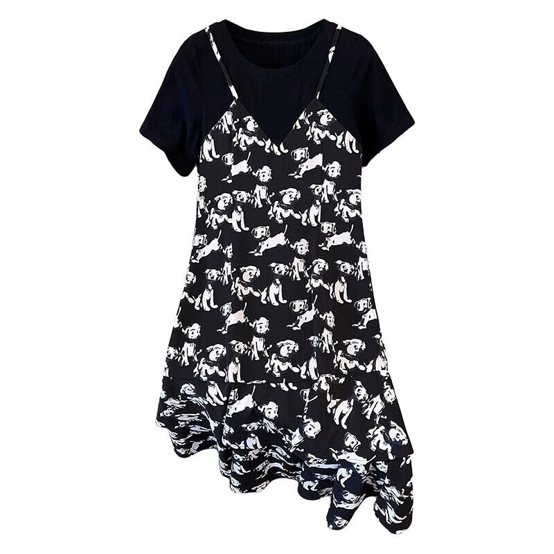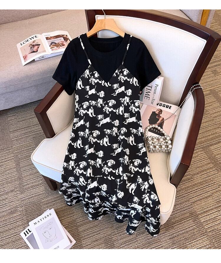 プラスサイズの女性の 2023 脂肪姉妹サマードレス新しい偽ツーピーススカート甘い小さな新鮮な花柄サスペンダードレス 大きめサイズ 大人ガーリー スウィート キュート カジュアル 夏物 8884123878069270