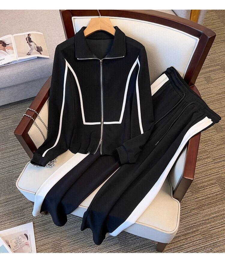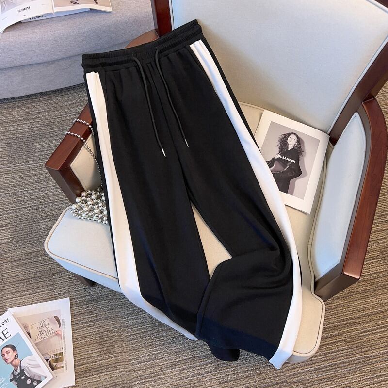 プラスサイズの婦人服 2023 トレンディな秋の新ファットシスター多目的老化スーツトレーナー弾性ウエストワイドレッグパンツ 2 点セット エラスティック 伸縮 大きめサイズ オータム 秋物 ワイドパンツ 8884191588710549