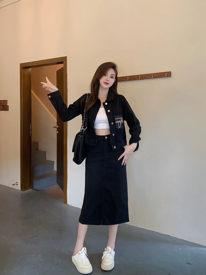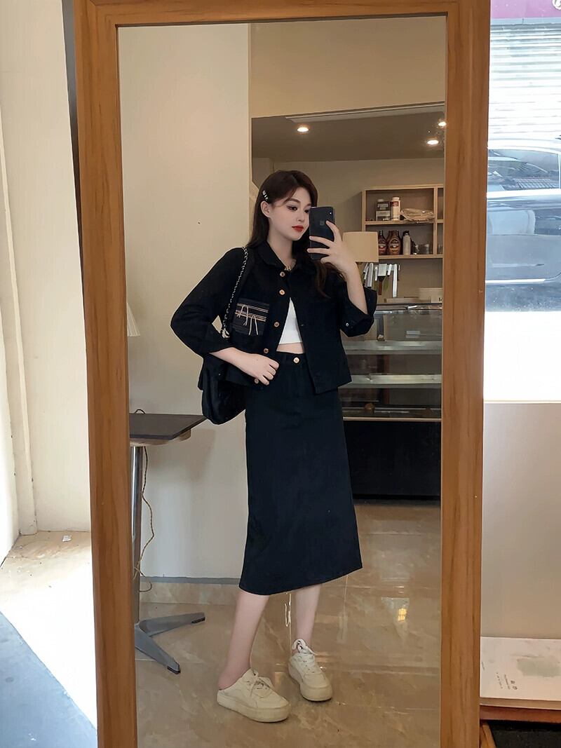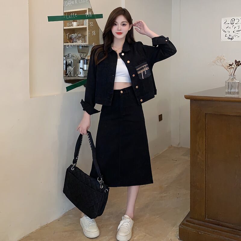 プラスサイズの婦人服 2023 流行の秋の新脂肪姉妹スタイルのファッションスーツデニムジャケットスカートツーピーススーツ 大きめサイズ オータム 秋物 8884195452194200