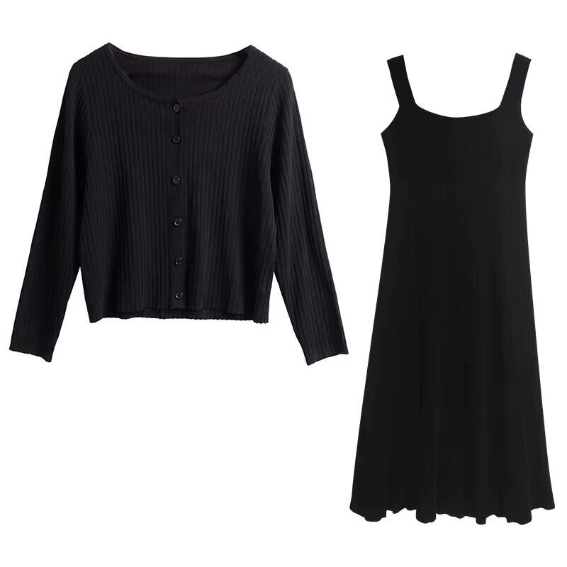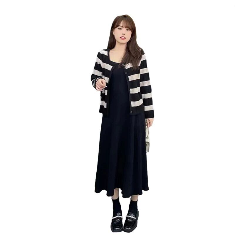 プラスサイズの婦人服脂肪初秋 2023 新しいファッションスーツスリムニットカーディガンサスペンダードレス 2 点セット 大きめサイズ オータム 秋物 8884120298807257
