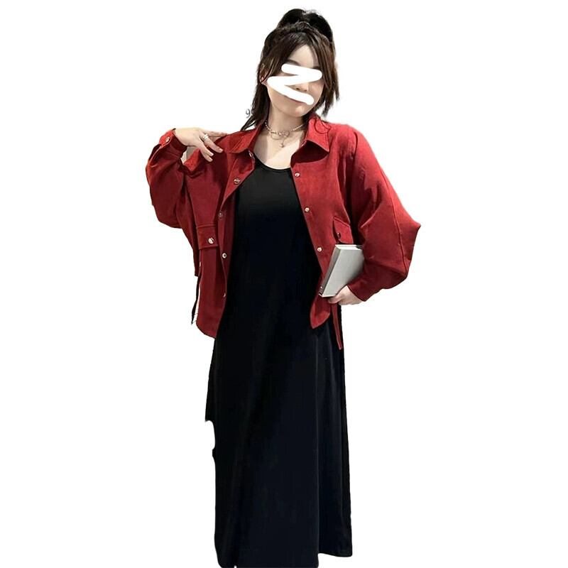 色:シングルブラックスカート,シングル赤いジャケット,シングルコーヒーカラーコート