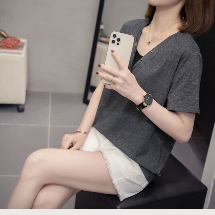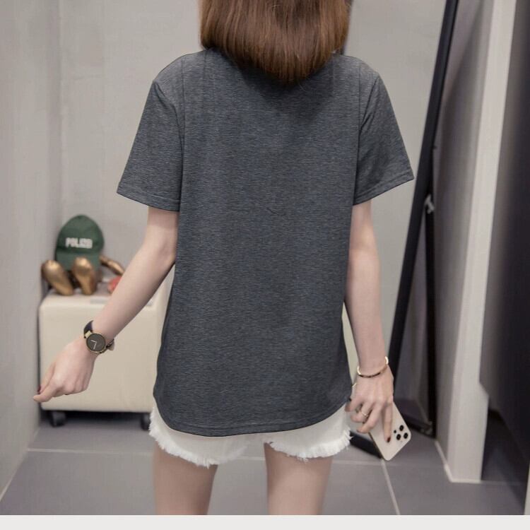 プラスサイズの婦人服 2023 流行の女性の夏の新しいスタイルファットシスタールーズ痩身デザインファッショナブルな年齢を減らす半袖 Tシャツ女性 大きめサイズ サマー 夏物 8884124228187050