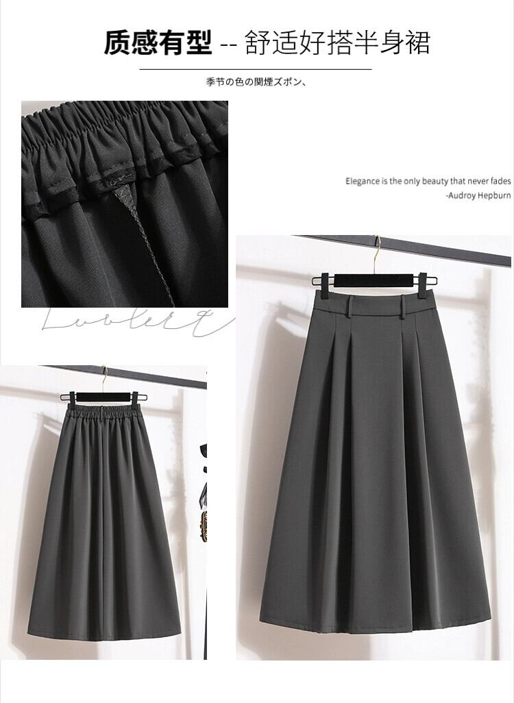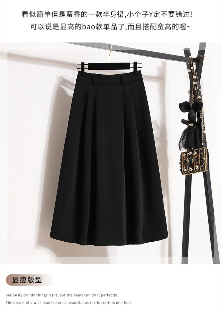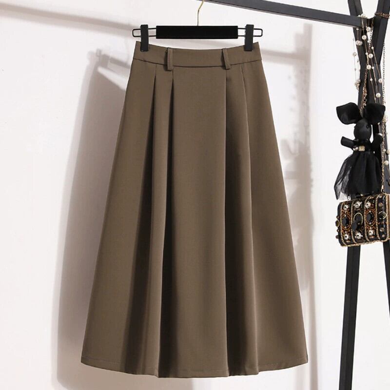 プラスサイズの婦人服 2023 新しい秋服脂肪、多用途カジュアルルーズ A ライン無地ファッショナブルなスカートの女性 大きめサイズ オータム 秋物 Aライン ソリッドカラー 8884142091750642