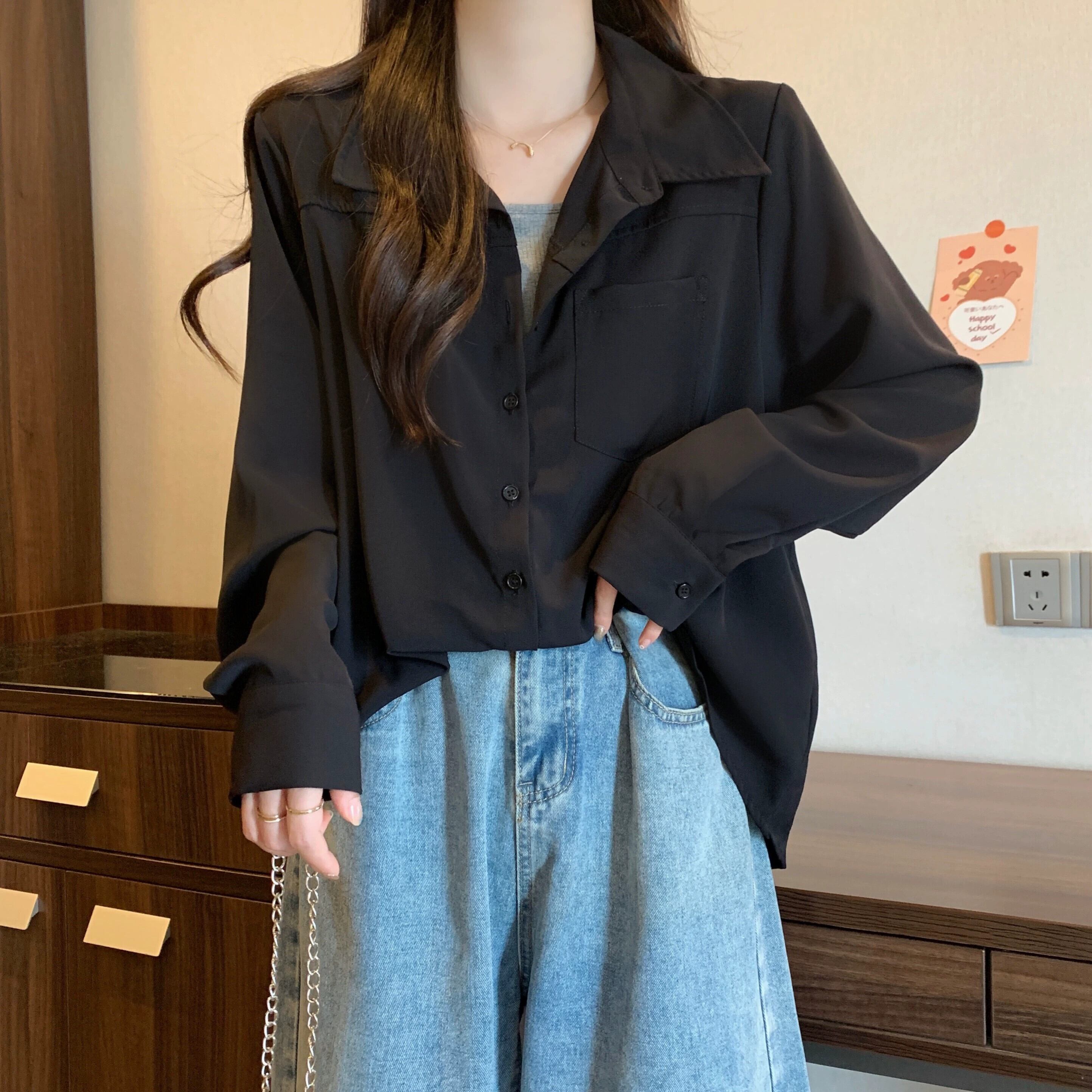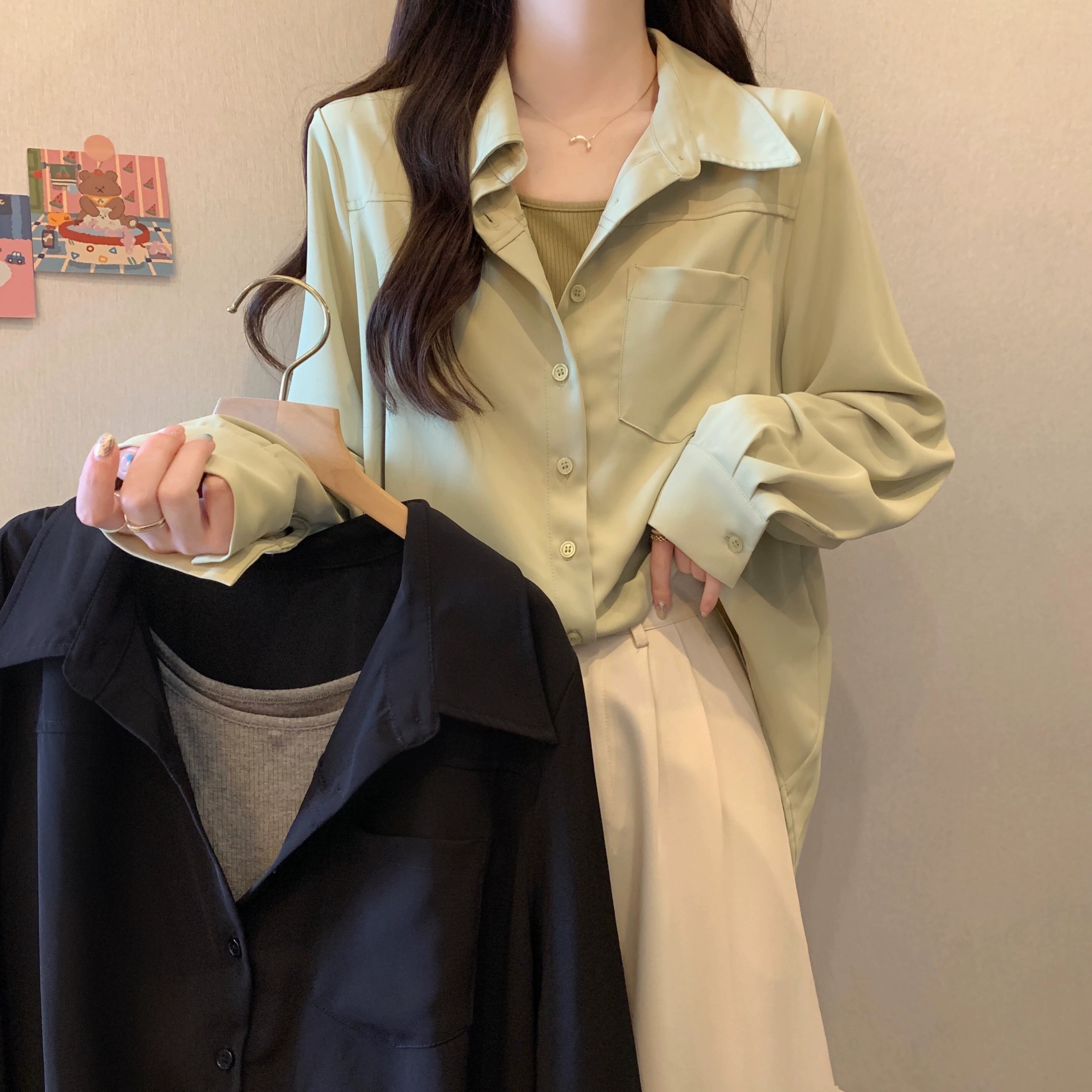 プラスサイズの女性の秋の服の太さmm、痩身と肉カバー、緩い長袖サスペンダー、デザイン、気質シャツ、偽ツーピーストップス ロング 大きめサイズ オータム 秋物 8884171157076889