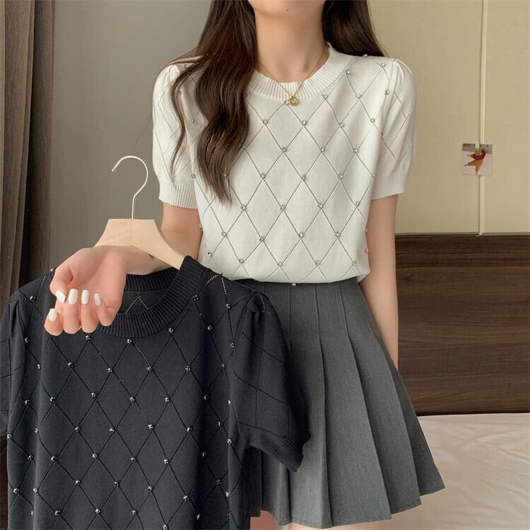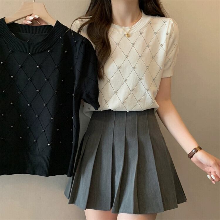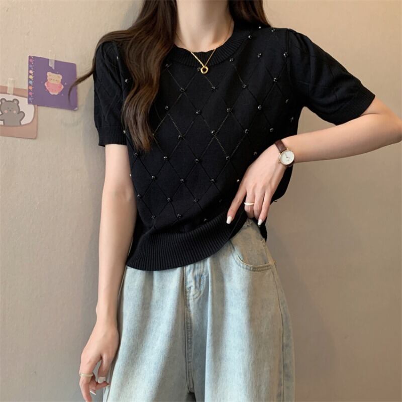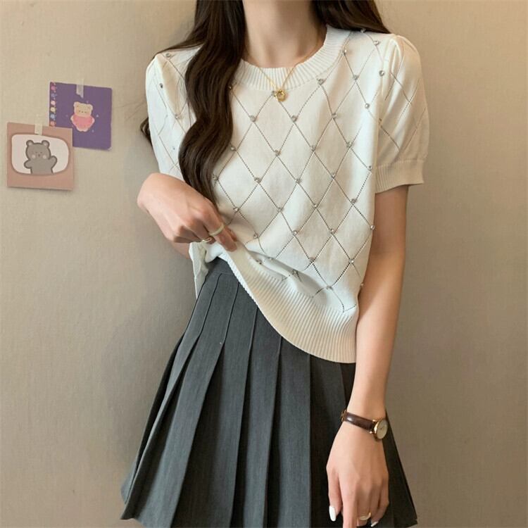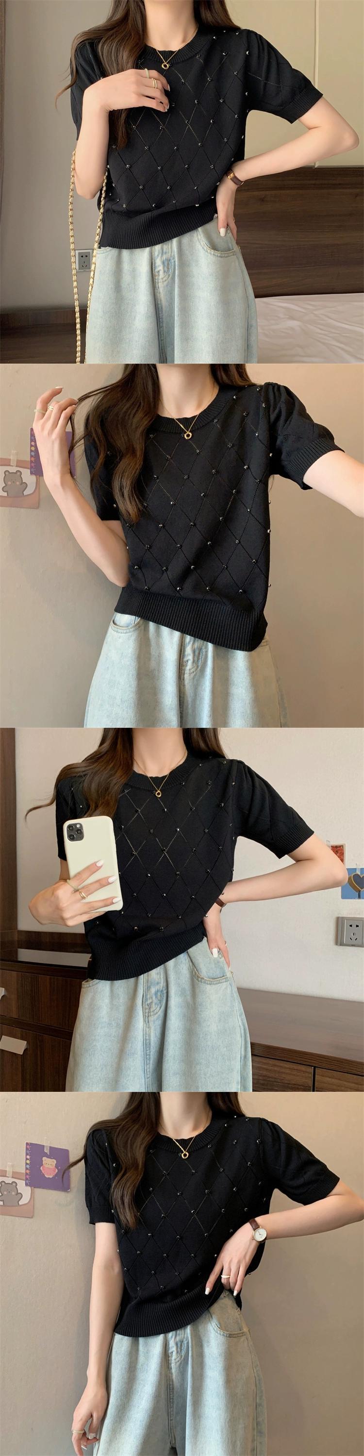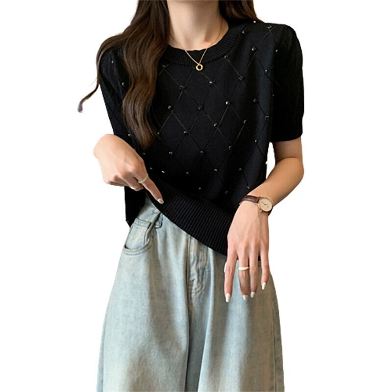 プラスサイズの婦人服 2023 流行の女性の夏の新しいスタイルファットシスターファッション気質年齢削減多用途痩身無地半袖 T シャツ 大きめサイズ サマー 夏物 Tシャツ ソリッドカラー 8884154647377314