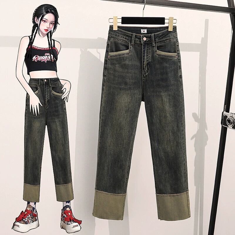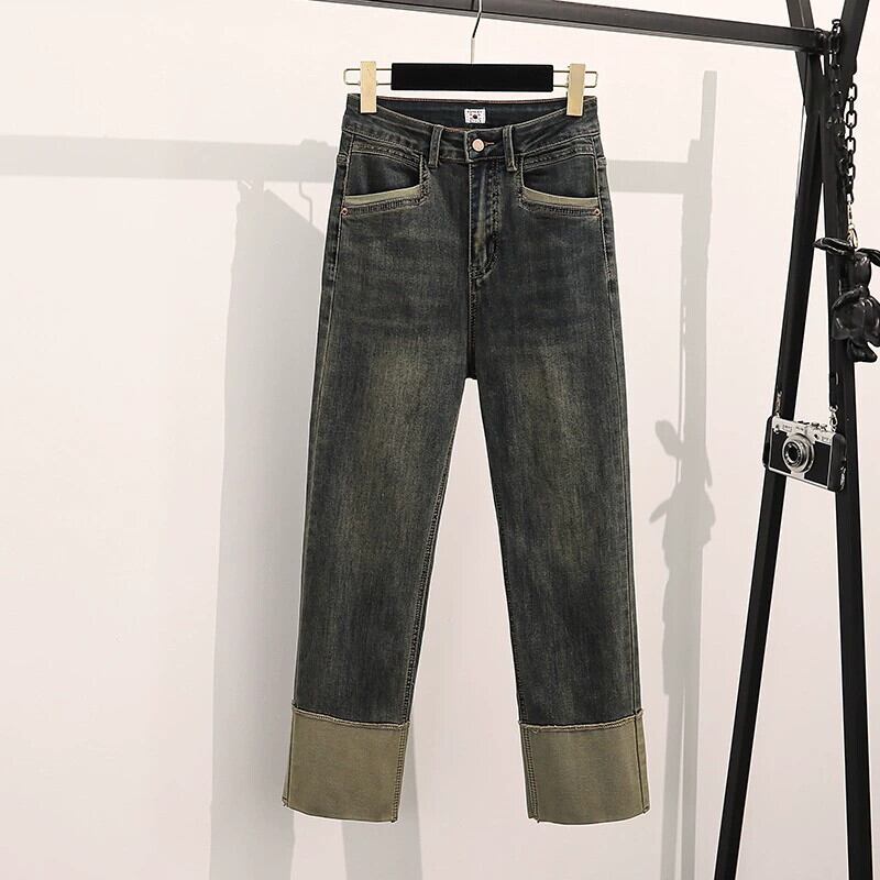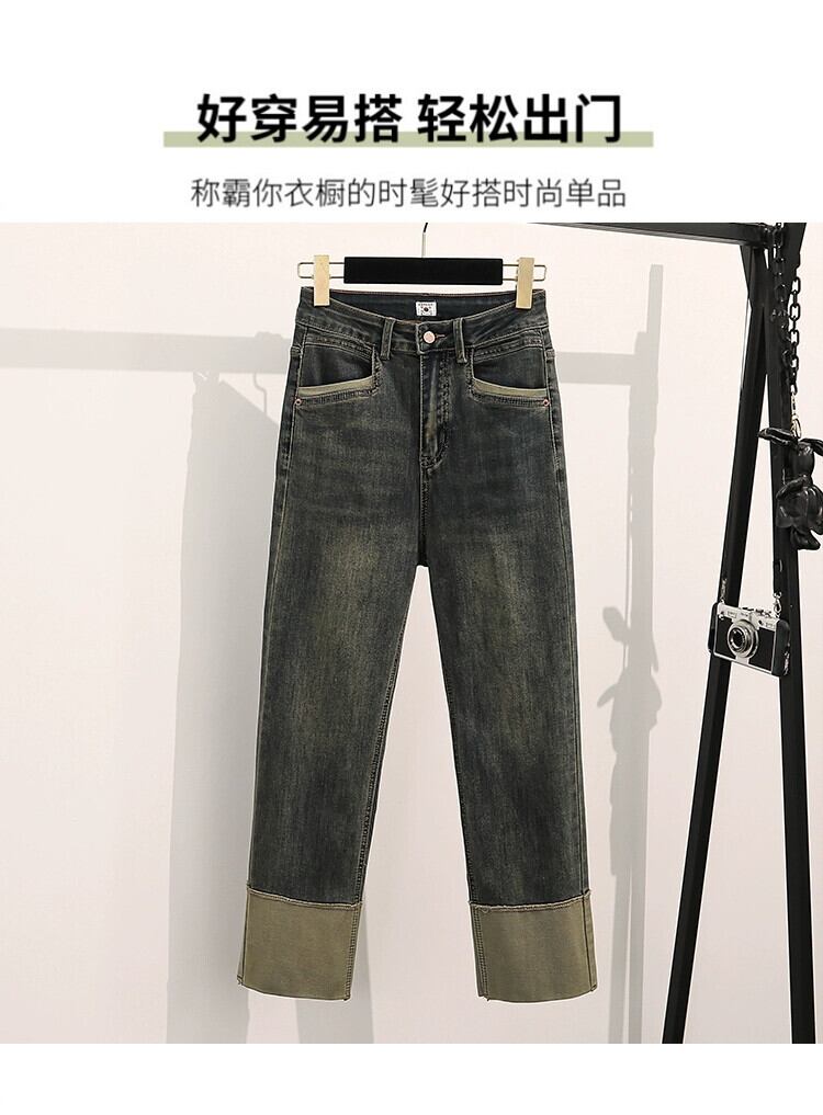 プラスサイズの女性の 2023 トレンディな秋スタイルファットシスター西洋スタイル多用途ストレートジーンズウエストスリムシガレットパンツ 大きめサイズ オータム 秋物 8884171795982921
