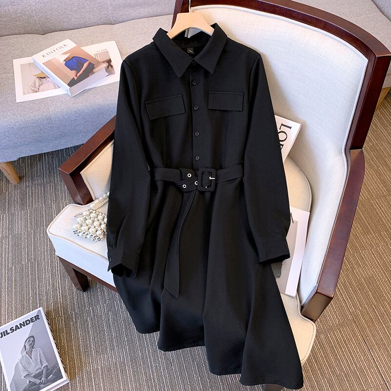 プラスサイズの女性の 2023 ファットシスター秋有能な多用途スカートスリムラペル西洋スタイル長袖ドレス ロング 大きめサイズ オータム 秋物 8884147781058331