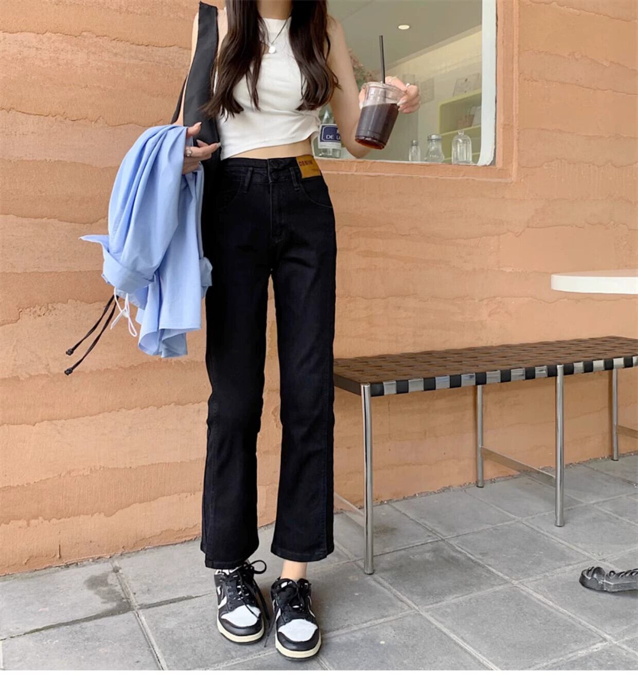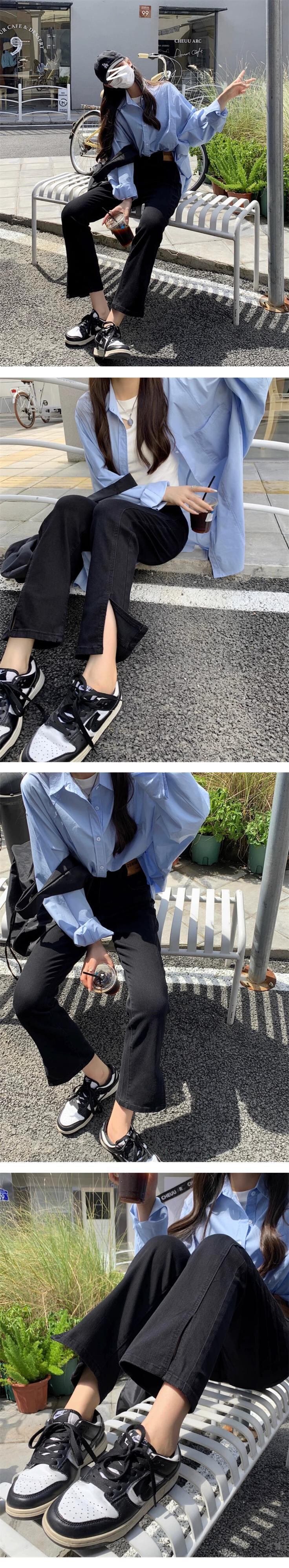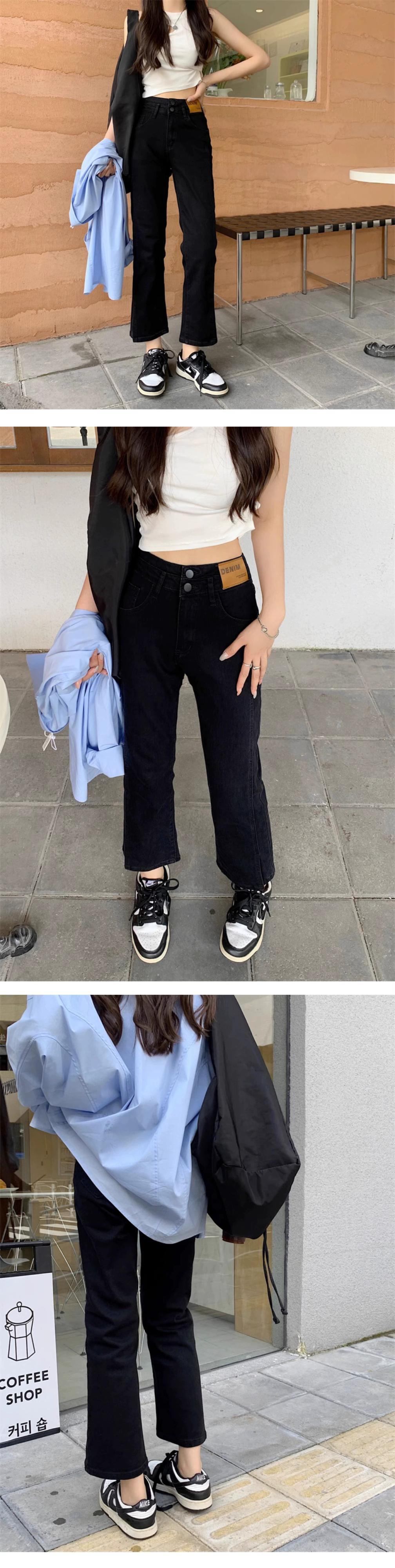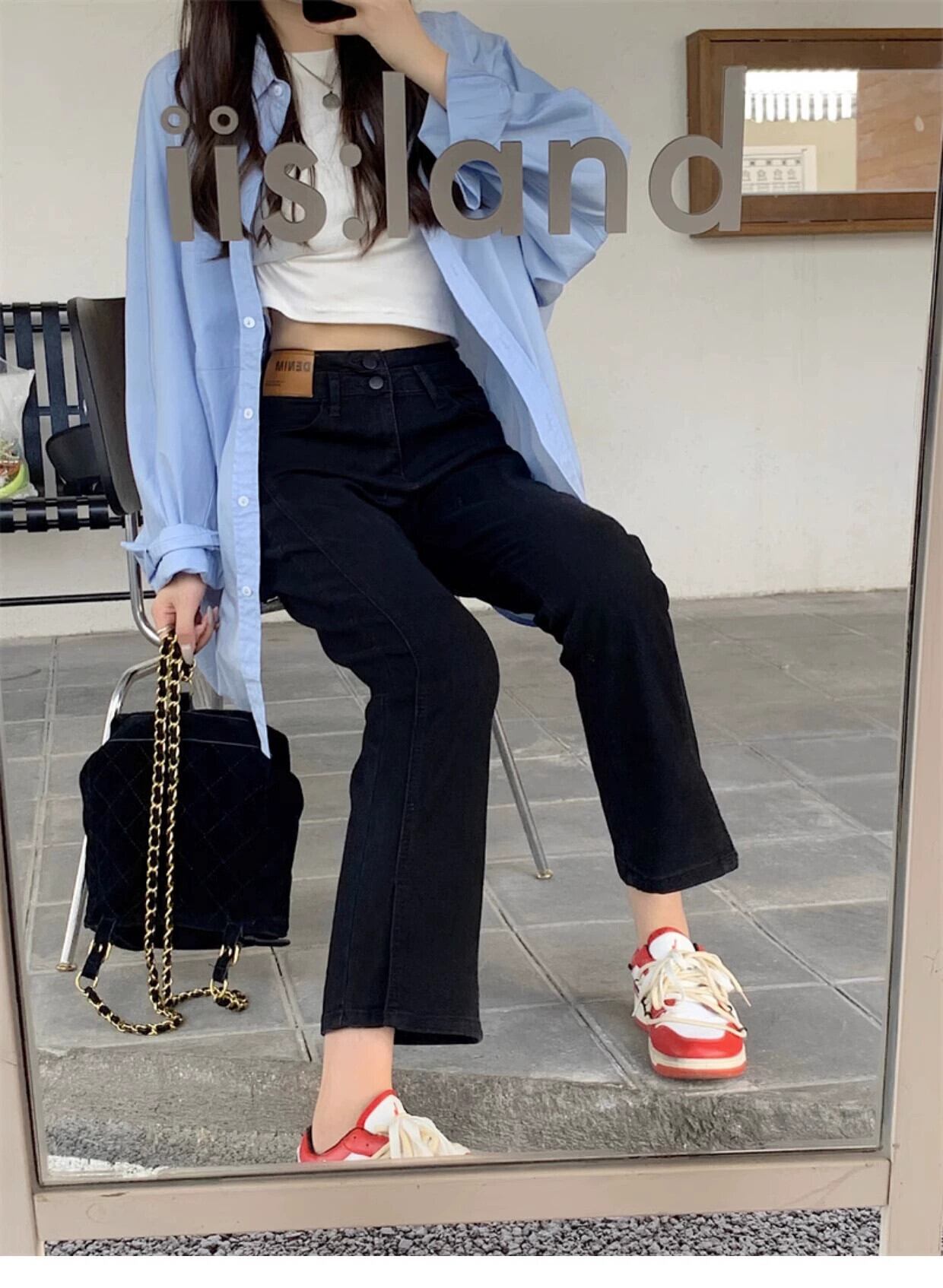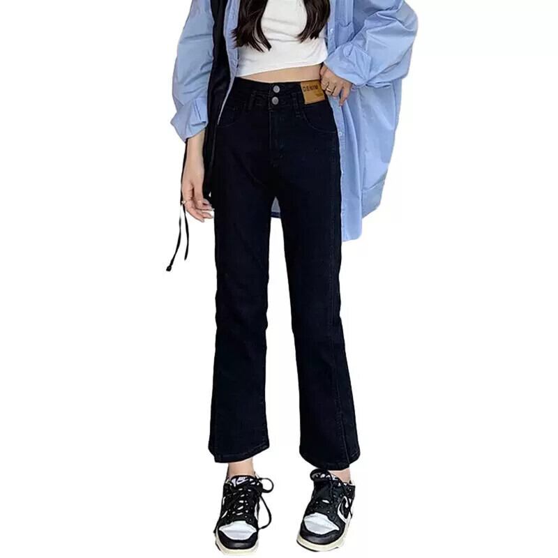 プラスサイズの婦人服 2023 ファットシスター秋の新スタイルのスリットストレートジーンズハイウエストスリムストレッチ 9 点シガレットパンツ ハイウェスト 大きめサイズ オータム 秋物 8884133341677369