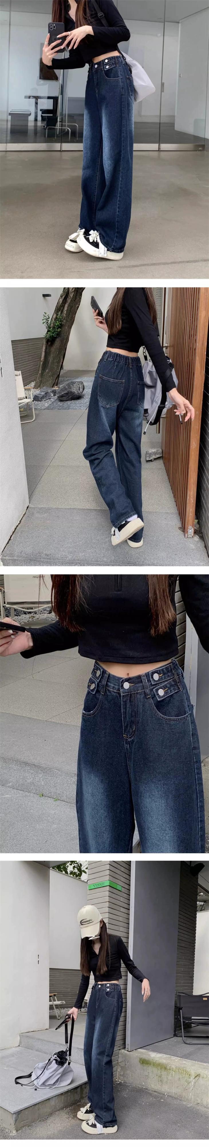 プラスサイズの女性の 2023 ファットシスター秋レトロワイドレッグジーンズ痩身ルーズストレートパンツ 大きめサイズ オータム 秋物 ワイドパンツ 8884131140318788