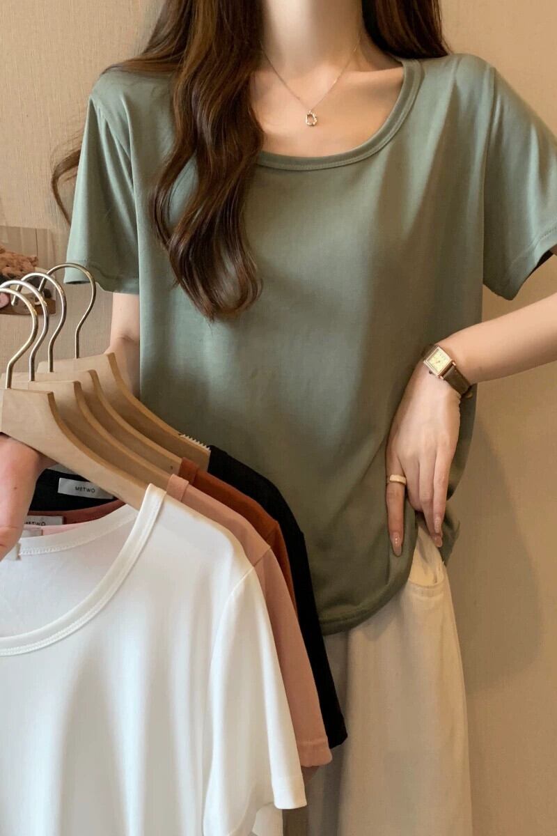 プラスサイズの婦人服 2023 脂肪姉妹夏服新しいスタイル怠惰なルーズラウンドネックボトシャツ Tシャツ半袖トップ 大きめサイズ サマー 夏物 Oネック 8884125066783169