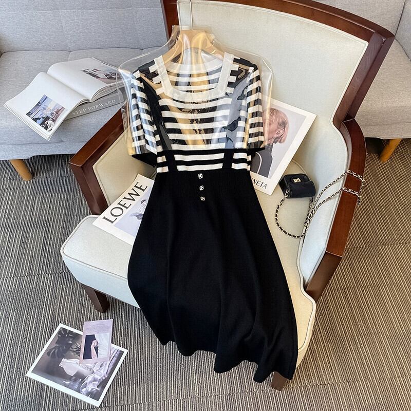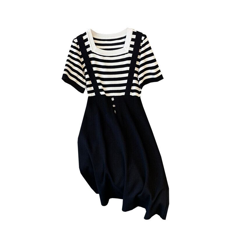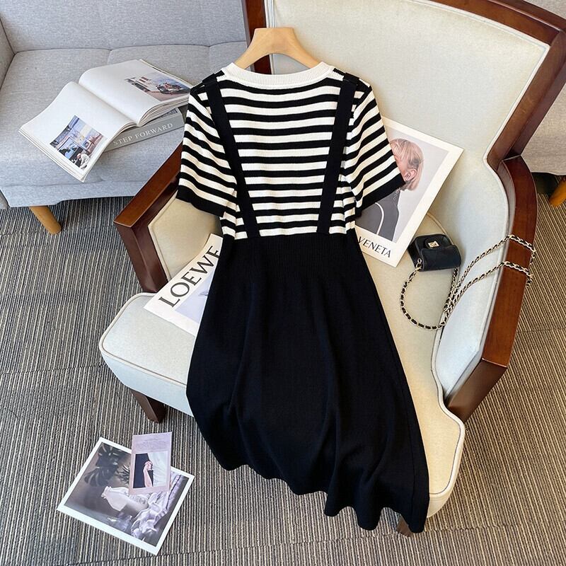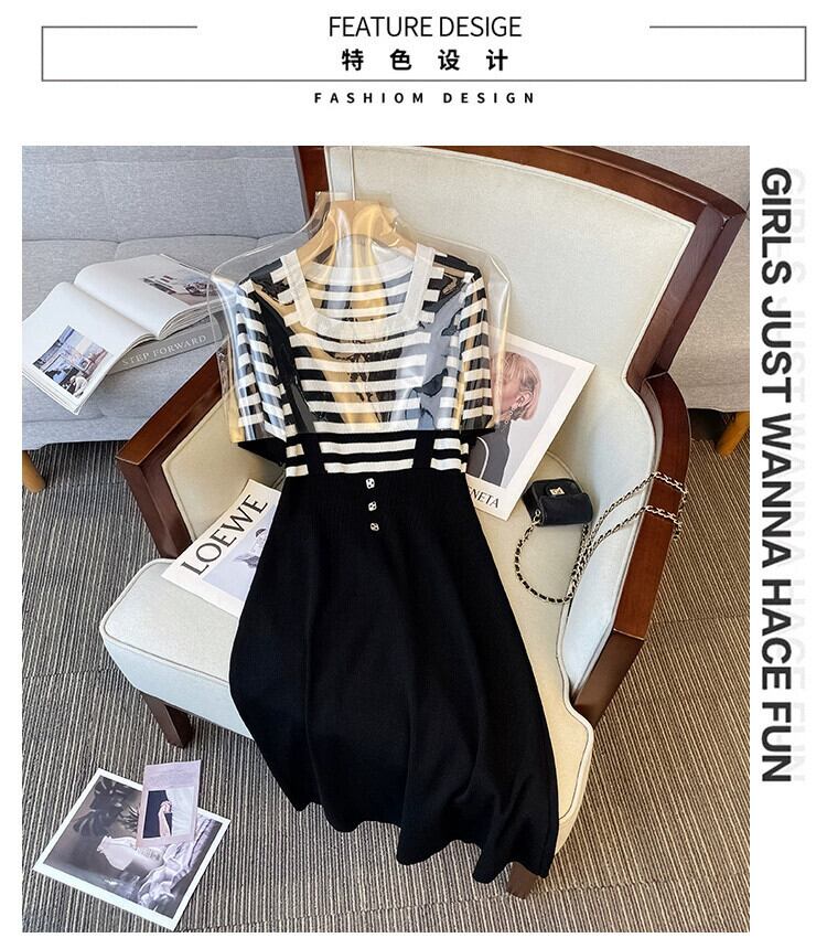 プラスサイズの婦人服 2023 夏服脂肪の新しいスタイルフランスの気質 a ラインスカート偽ツーピースルーズでスリムなドレス 大きめサイズ サマー 夏物 Aライン 8884195754523450