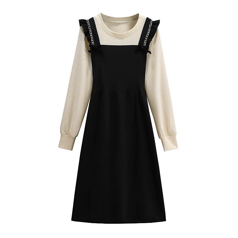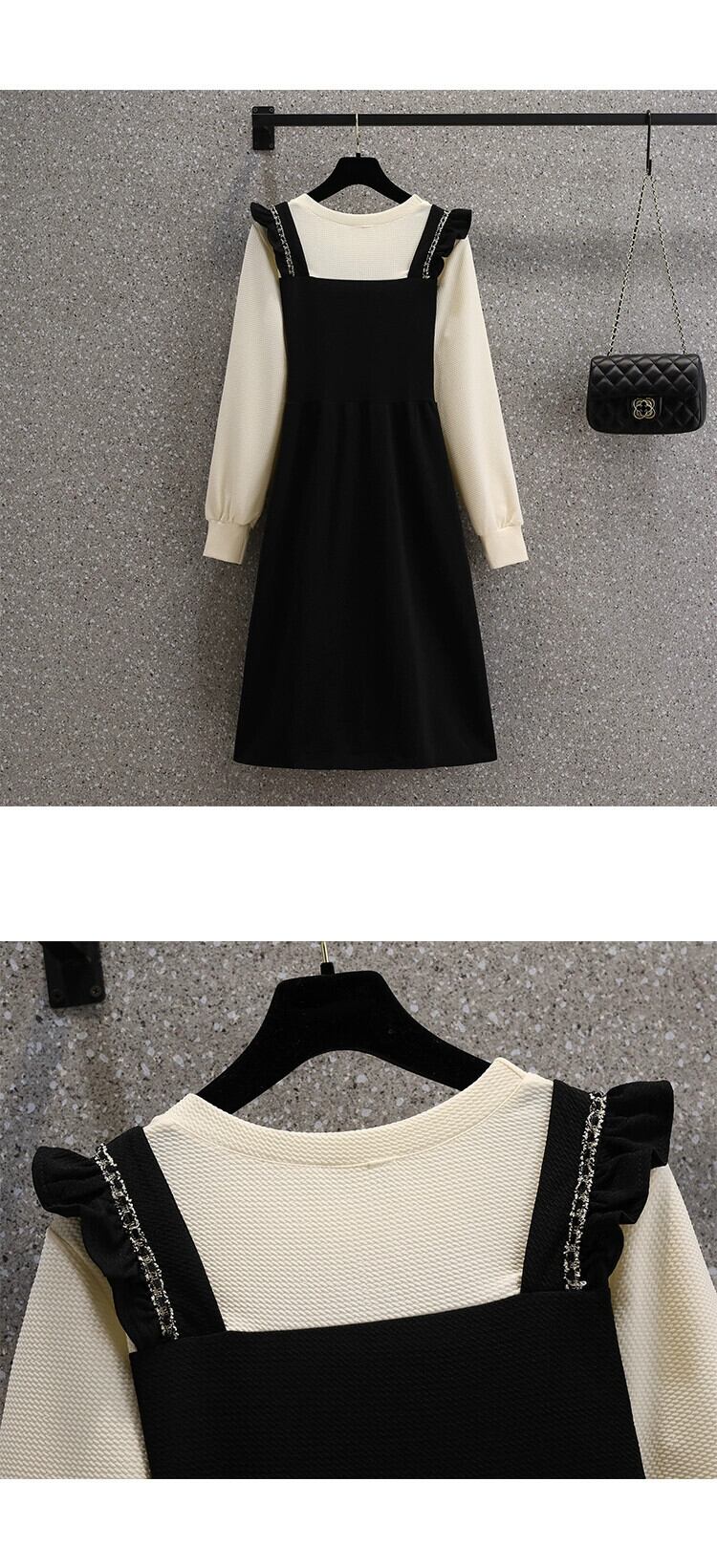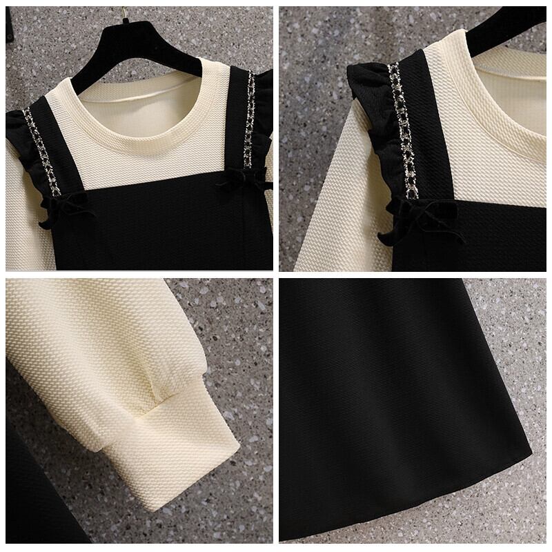 プラスサイズの婦人服 2023 脂肪姉妹秋の新フレンチデザイン A ラインスカート痩身偽ツーピース長袖ドレス ロング 大きめサイズ オータム 秋物 Aライン 8884156297166810