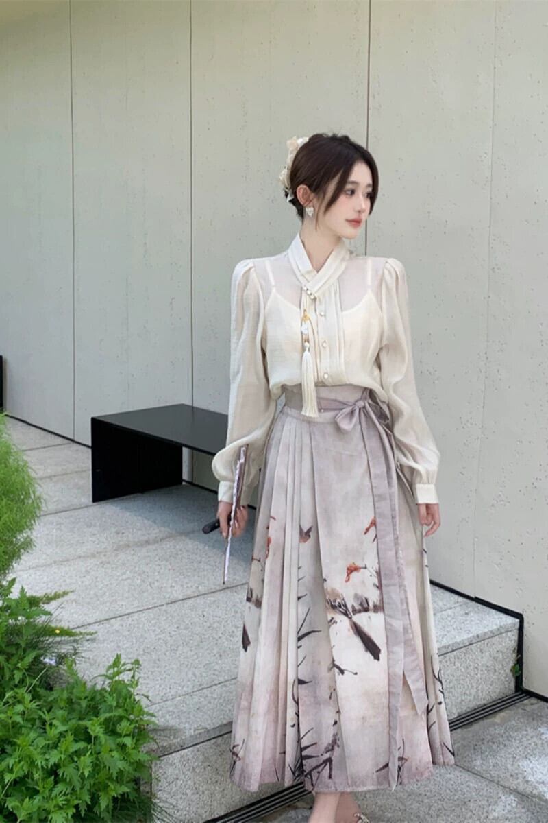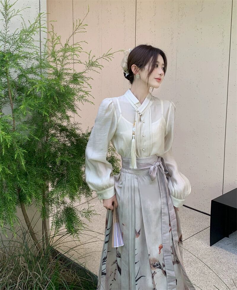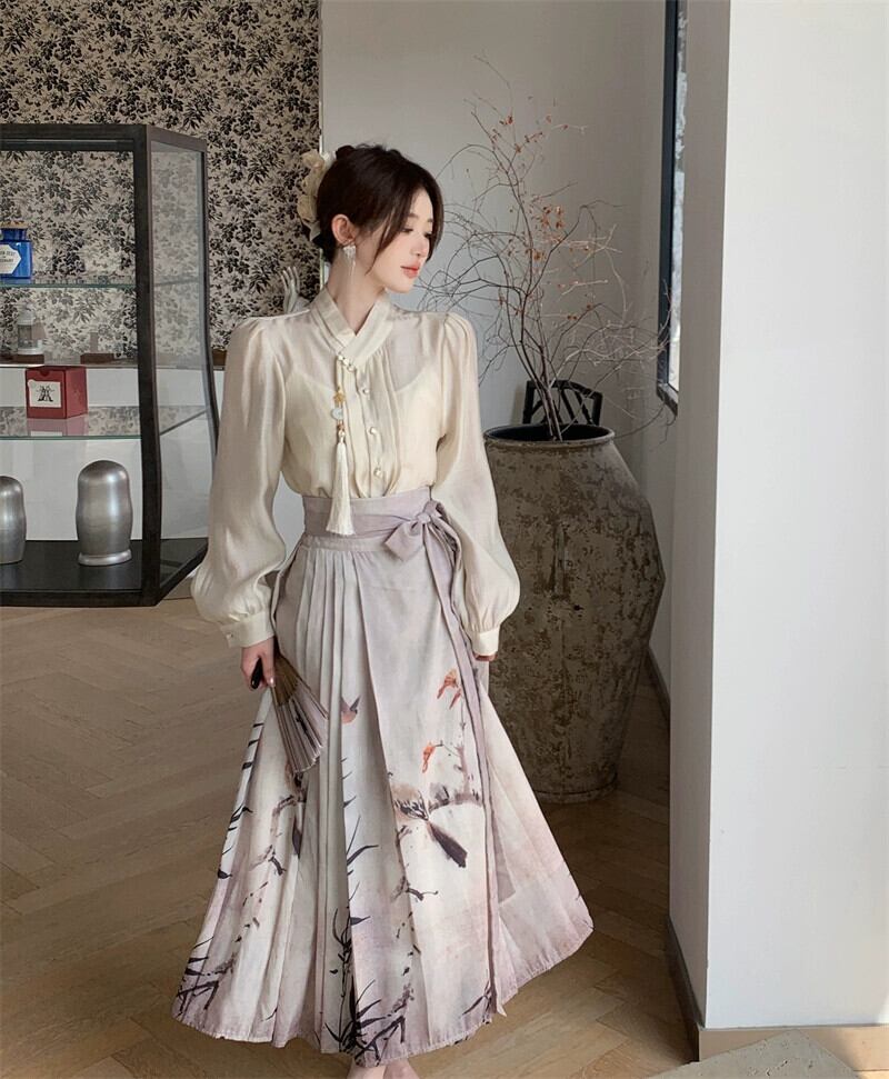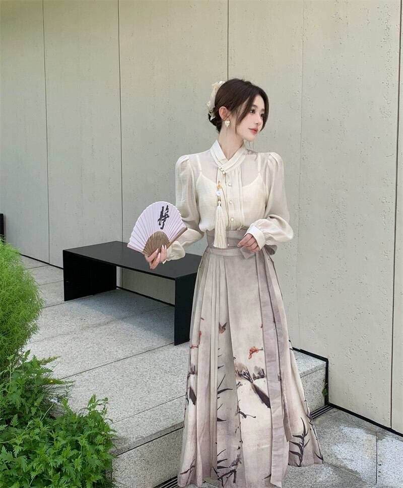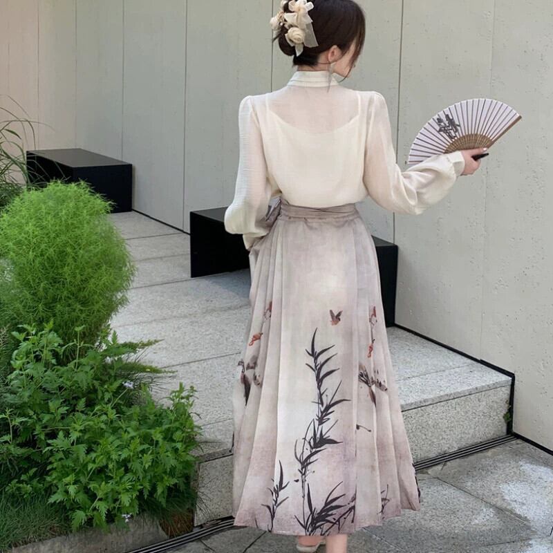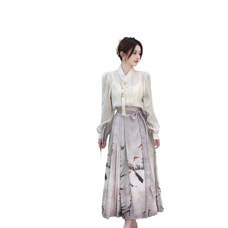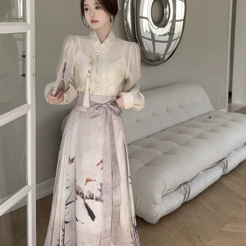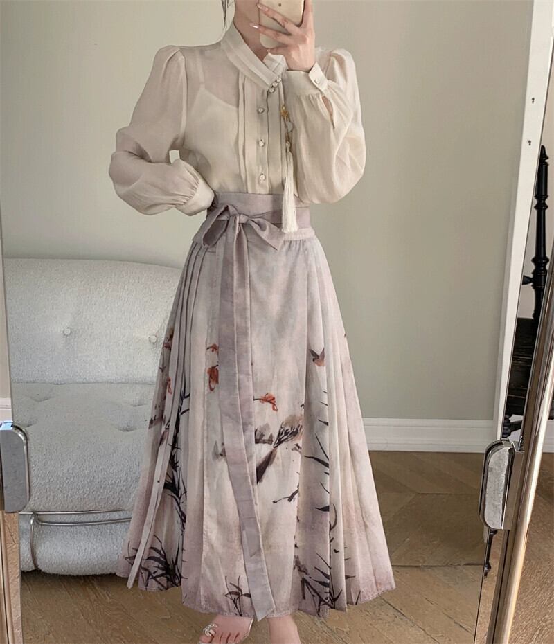 プラスサイズの婦人服 2023 流行の秋の新しい脂肪姉妹新しい中国のスーツファッショナブルな国民風のシャツとスカートの 2 点セット 大きめサイズ オータム 秋物 8884147101623516