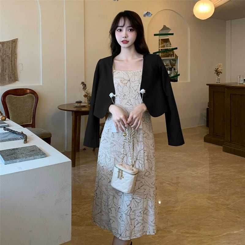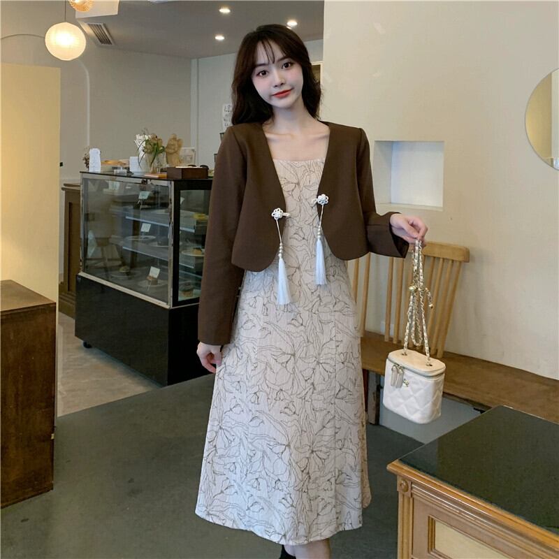 色:黒いジャケット,コーヒージャケット,スリングドレス
