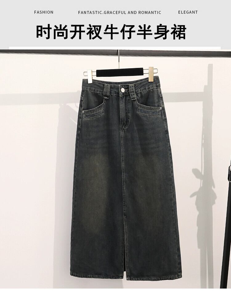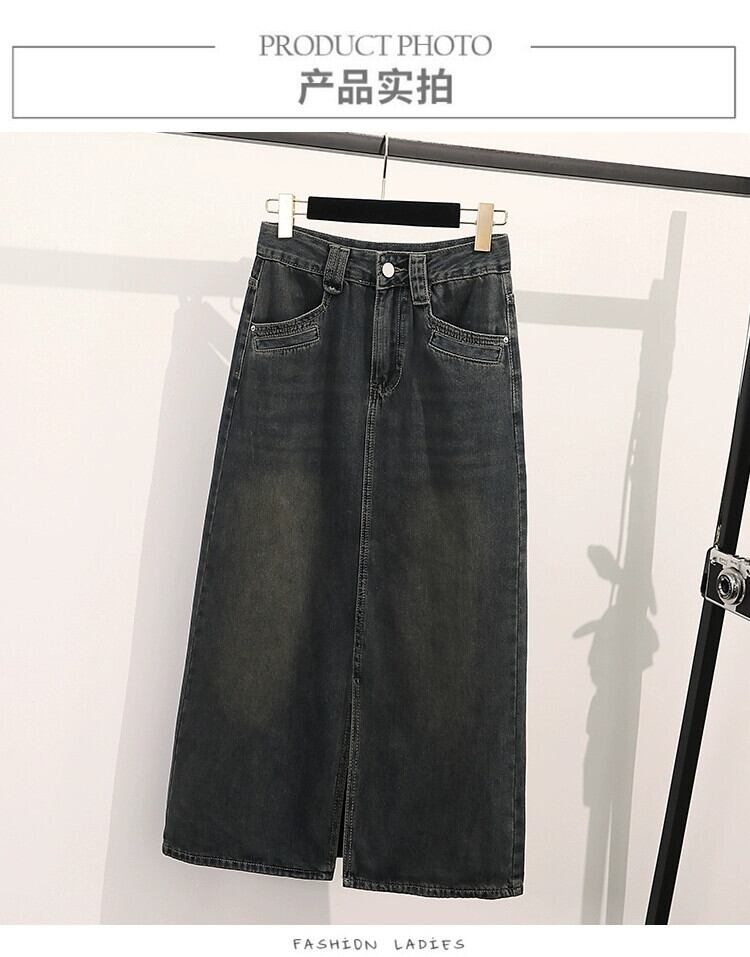 プラスサイズの婦人服 2023 流行の秋の新ファットハイウエストファッショナブルなデニムスカート高度な a ラインスカートヒップスカート ハイウェスト 大きめサイズ オータム 秋物 Aライン 8884138359288904