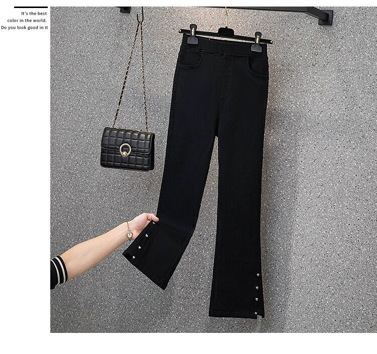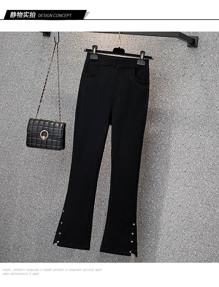 プラスサイズの婦人服 2023 流行の女性の夏の新しいスタイルファットシスター無地ハイウエストスリムストレッチスタイル 9 点カジュアルパンツ女性 ハイウェスト 大きめサイズ サマー 夏物 ソリッドカラー 8884159885452958