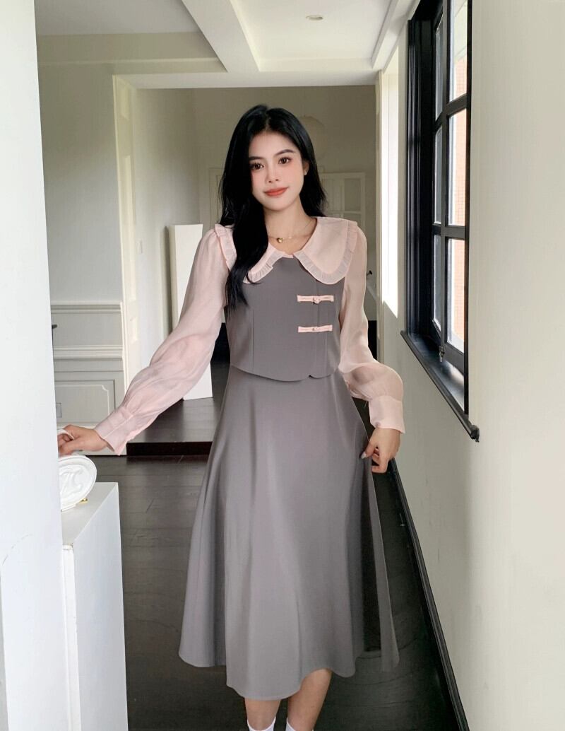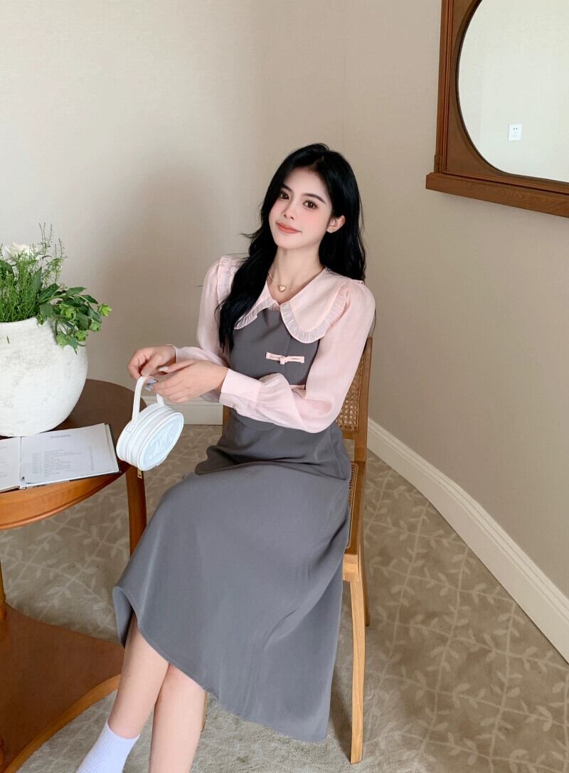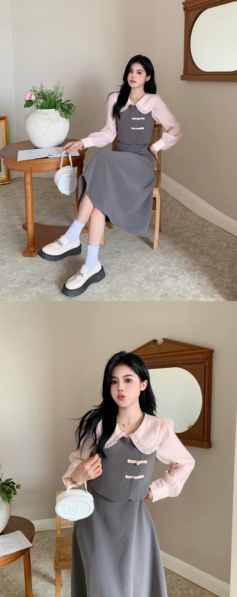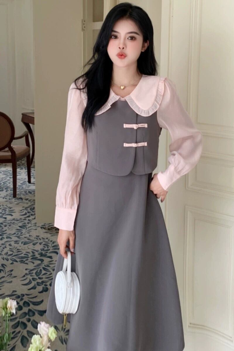 プラスサイズの婦人服 2023 トレンディな秋の新しい脂肪姉妹新しい中国風のハイエンドニッチスカート偽ツーピース痩身ドレス 大きめサイズ オータム 秋物 8884142682194939