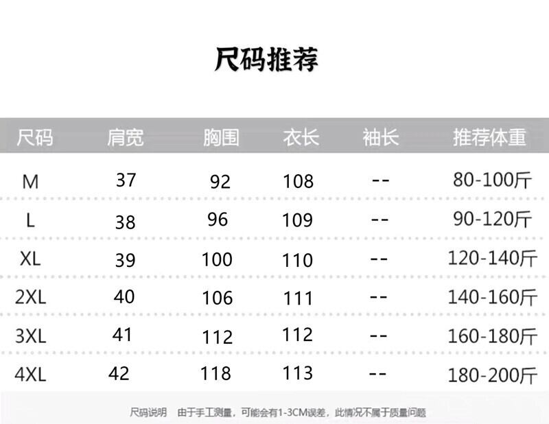 体重表記について、中国は2倍の体重で表記されています。例えば、Lサイズ→推奨90kg〜116kgであれば、45~58kg程度の方が対象になります。海外サイトを使用する方はお気を付けください。