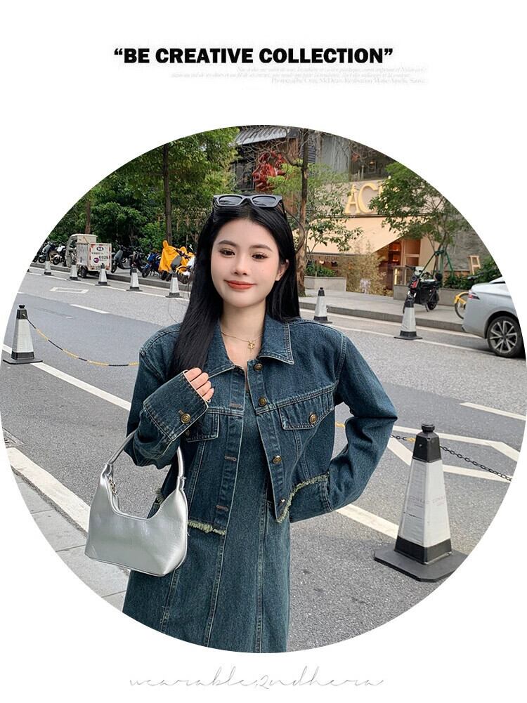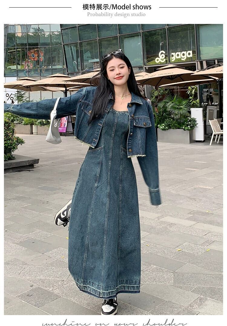 プラスサイズの婦人服 2023 流行の秋の新ファットシスターファッションハイエンドスーツデニムジャケットドレス 2 点セット 大きめサイズ オータム 秋物 8884127476031388