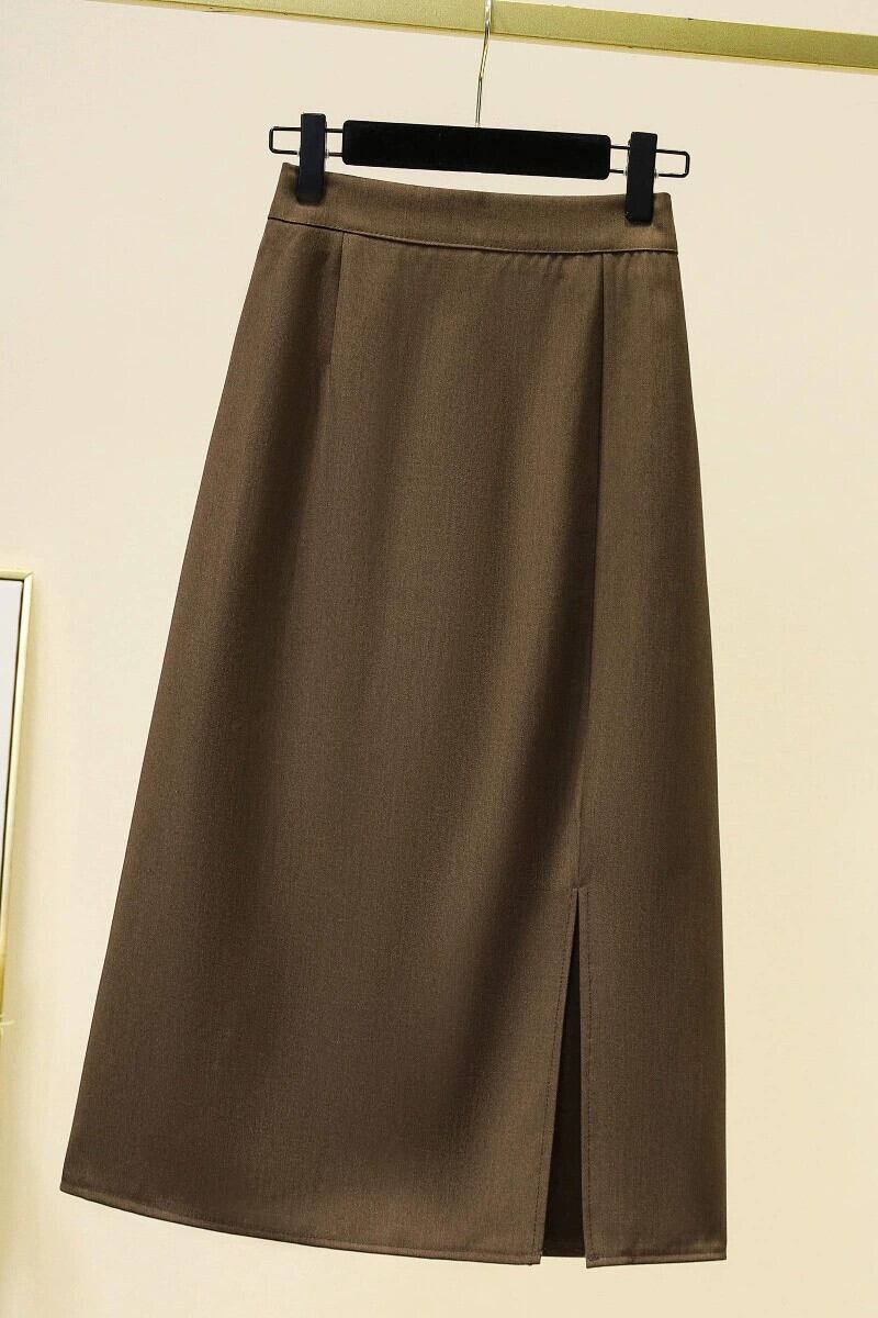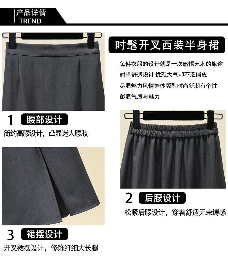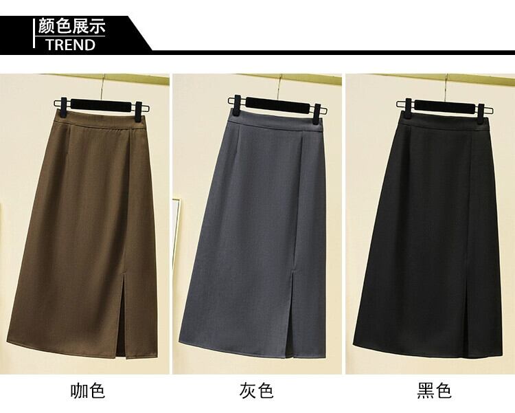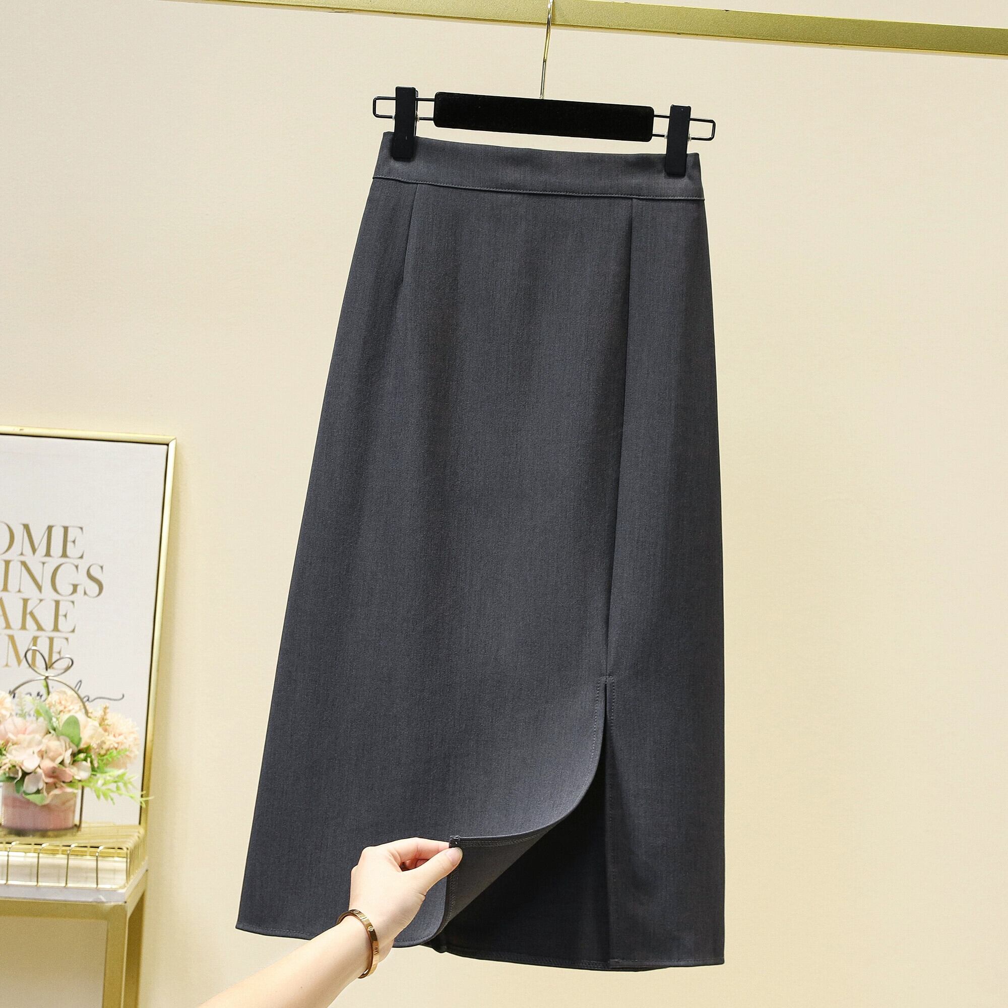 プラスサイズの婦人服 2023 秋服太い、ファッショナブル、年齢を減らす、ハイウエスト A ライン スカート、デザイン スリット スカート 大きめサイズ オータム 秋物 Aライン 8884194809510654