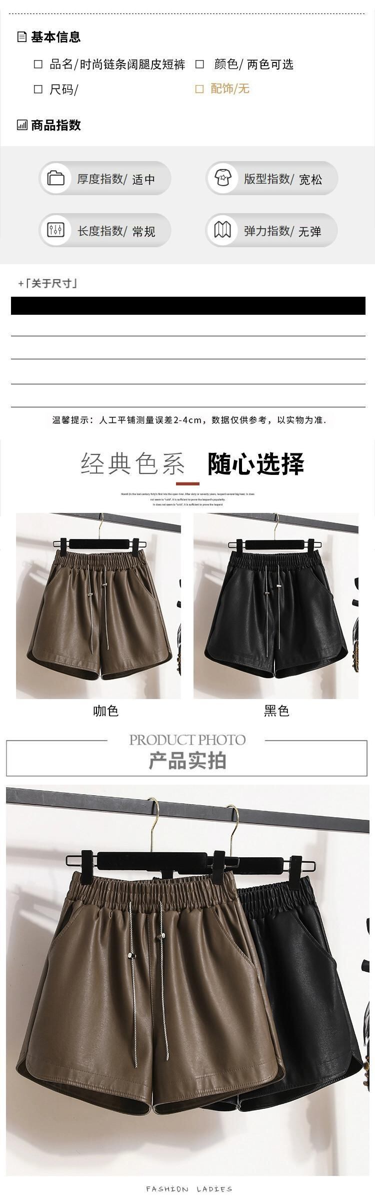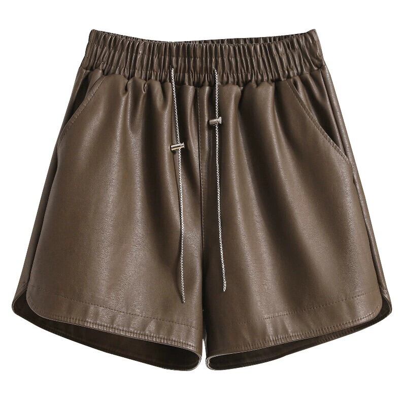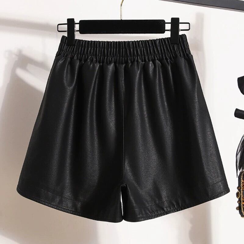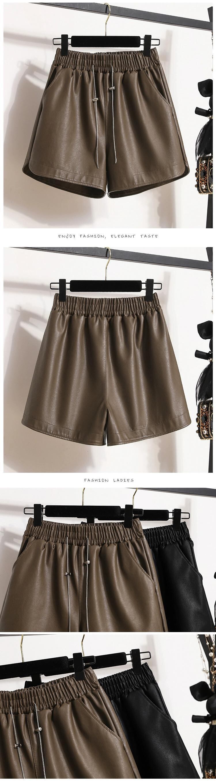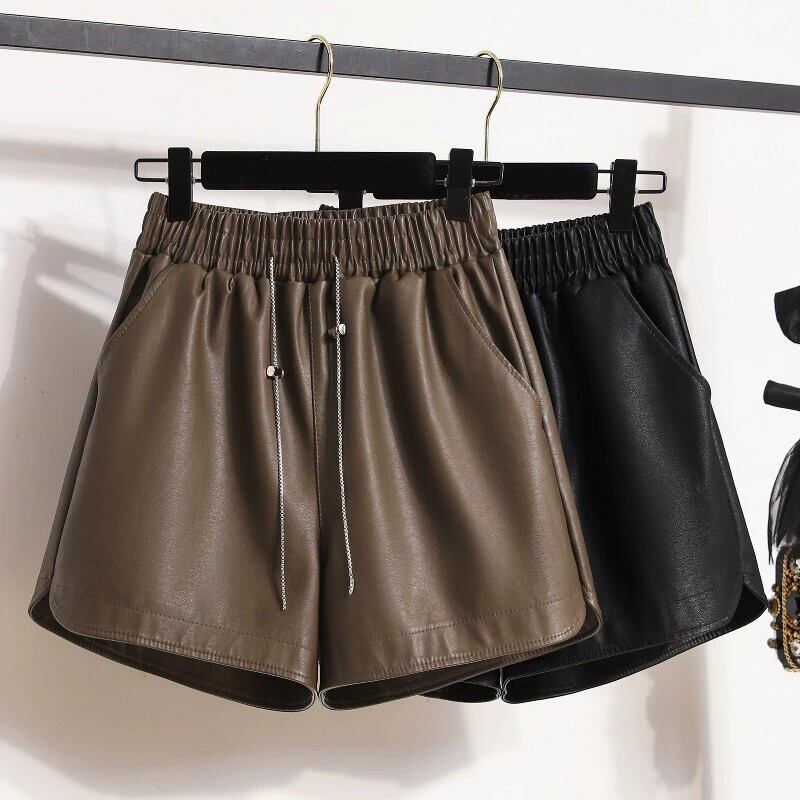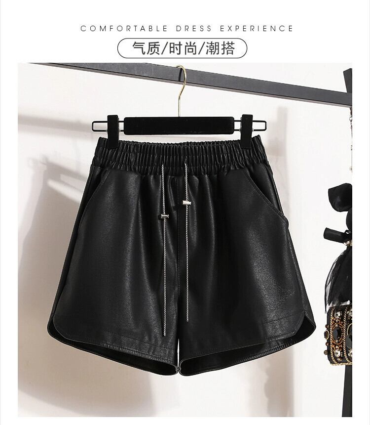 プラスサイズの婦人服 2023 トレンド秋の新ファットシスターハイウエスト A ラインワイドレッグショーツ PU レザーパンツカジュアルボトパンツ ハイウェスト 大きめサイズ オータム 秋物 ブルマー Aライン ワイドパンツ 8884183362084523